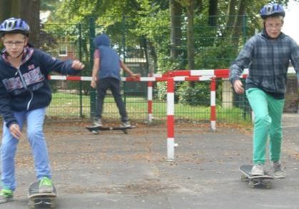 Außerdem kann man sich in der Pausenhalle eine Reihe von Außenspielgeräten ausleiten: