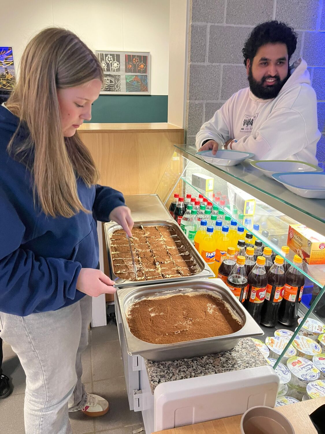 Im Anschluss wurde gemeinsam gegessen. Schüler*innen der Q1 übernahmen das Grillen und sorgten für die Verpflegung der Gäste. Ein weiterer Höhepunkt war die Jubiläumstorte, gestaltet vom Café Liesenkötter – ein besonderer Dank gilt Tobias Liesenkötter für diese großzügige Unterstützung.