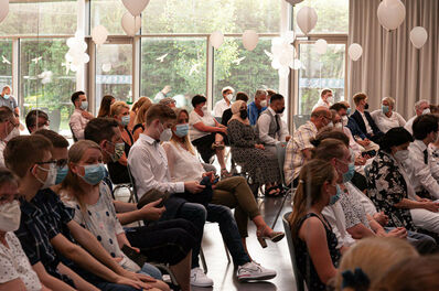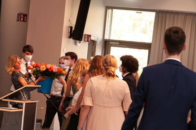 Anschließend legte Oberstufenleiter Ingo Koschinski – typisch Mathelehrer - Zahlen vor: von den 38 Abiturienten seien einst 29 Gründungsmitglieder des ersten Fünferjahrgangs gewesen. „Alle haben bestanden, und das ganz ohne Nachprüfung.“ Der Notenschnitt liegt bei 2,53 – etwas besser als der NRW-Gesamtschulschnitt 2020.