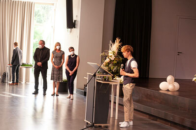 Last but not least kamen auch die beiden Stufenleiter*innen Katharina Boldt und Lars Gäbler zu Wort. Sie verließen die Schule nach neun Jahren nicht mit leeren Händen, sondern „mit dem hart erarbeiteten Ticket für eine offene Zukunft“, so Gäbler. Mitschülerin Katharina Boldt resümierte: „Wir gehen als andere Menschen.“ Und man gehe nun „mit dem Mut, Risiken einzugehen“.