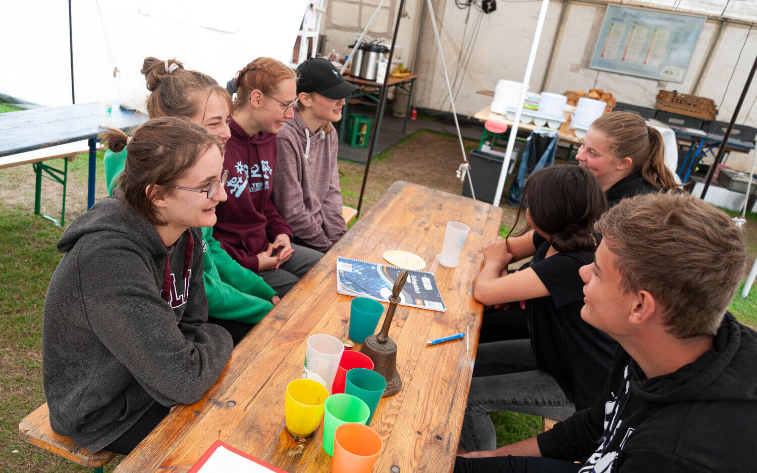 Besonders spannend war auch der Workshop von Ernährungsexpertin Ute Jentschura aus Münster im Zeltlager. Durch ihre fachkundige Expertise konnten alle Teamer sich über gesunde Ernährung informieren. „Auch wenn ich mich vorher schon mit dem Thema beschäftigt habe, war ich von einigem ganz schön überrascht“, erinnert sich Rebekka. Sie will in Zukunft direkt beim Einkauf auf die Inhaltsstoffe achten und sich zuhause auch wie im Lager kennen- und liebengelernt eine „Müslibar“ einrichten mit Leinsamen, Haferflocken, Nüsse und Amaranth in einzelnen Behältern. Auch dass Olivenöl richtig gut für den Körper ist, war für Viele doch etwas Neues.