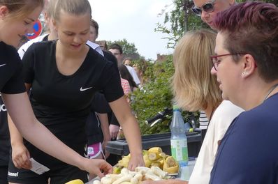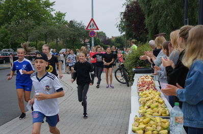 Alle hatten sich für den Sponsorenlauf eingesetzt, seien es nun die Oberstufenschüler beispielsweise vorrangig in der Organisation, die Lehrer als Streckenposten, die Nachbarschaft der Schule dadurch, dass sie Einschränkungen in Kauf nahm, die Unter- und Mittelstufenschüler durch beherztes Laufen oder der Förderverein durch die Versorgung mit frischen Früchten. Außergewöhnlich waren in diesem setting die Laufleistungen der Kinder aus den Klassen 6b, 6c, 7a und 9b. Gut gecoacht mit Trinkwasserstationen und nahezu professioneller Sprinkleranlage liefen sie jahrgangsstufenaufwärts gelistet 297 km, 289 km, 254 km und 293 km jeweils im Klassenverband. Das sind durchschnittlich für die 6b pro Kind 10,24 km, für die 6c 10,32 km, für die 7a 9,77 km und durchschnittlich pro Kind der 9b 9,45 gelaufene Kilometer.