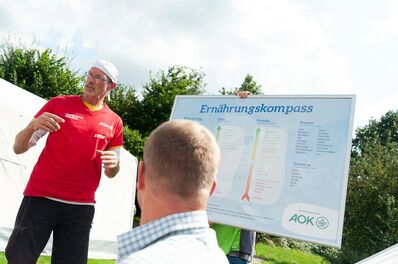 Teamleiter der Regionalvertretung Münsterland Dennis Epp und Daniel Schnieders, als ausgebildeter Sportwissenschaftler Spezialist im Bereich Prävention und Gesundheitsförderung, beide von der AOK NORDWEST sehen das ähnlich. Die Krankenkasse unterstützt das Projekt großzügig, u.a. finanzieren sie alle T-Shirts der Teamer, drucken die Plakate und stellen die Schrittzähler für alle 120 Teilnehmer zur Verfügung.