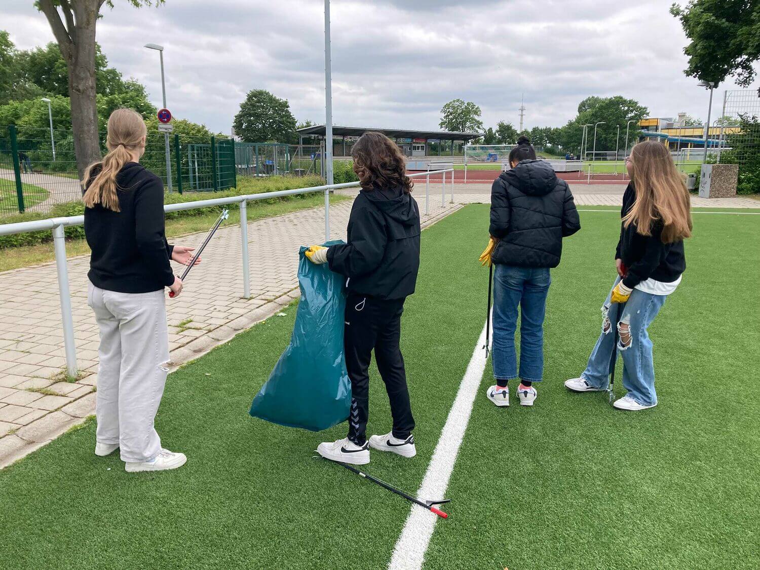 Nachhaltigkeit und der Einsatz für die eigene Region und Stadt stellten Grundpfeiler dieser Aktion dar. Ein voller Erfolg für alle Beteiligten. Als Dankeschön wurde auch mit Hilfe des Kollegen Herrn Themann dafür gesorgt, dass jeder Schüler und jede Schülerin mit einer Capri Sonne und einem Schokoladen-Croissant versorgt wurden. Bereits jetzt laufen die Planungen um am Clean Up Day – ganz nach dem Nachhaltigkeitsprinzip des Leitbilds unserer Schule – im September erneut auszurücken und Greven gemeinsam wieder sauber zu machen. Die Institutionalisierung des Projekts in Jahrgang 7 läuft bereits in Rücksprache mit Frau Neve, Volksbank Münsterland Nord, und der Schulleitung an.