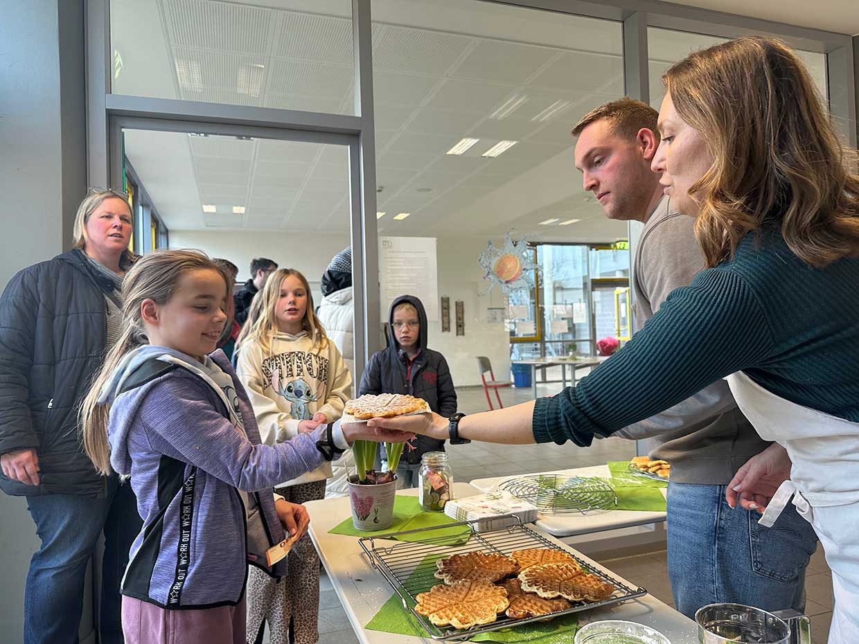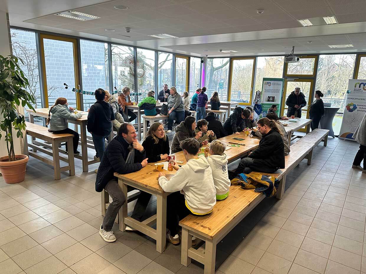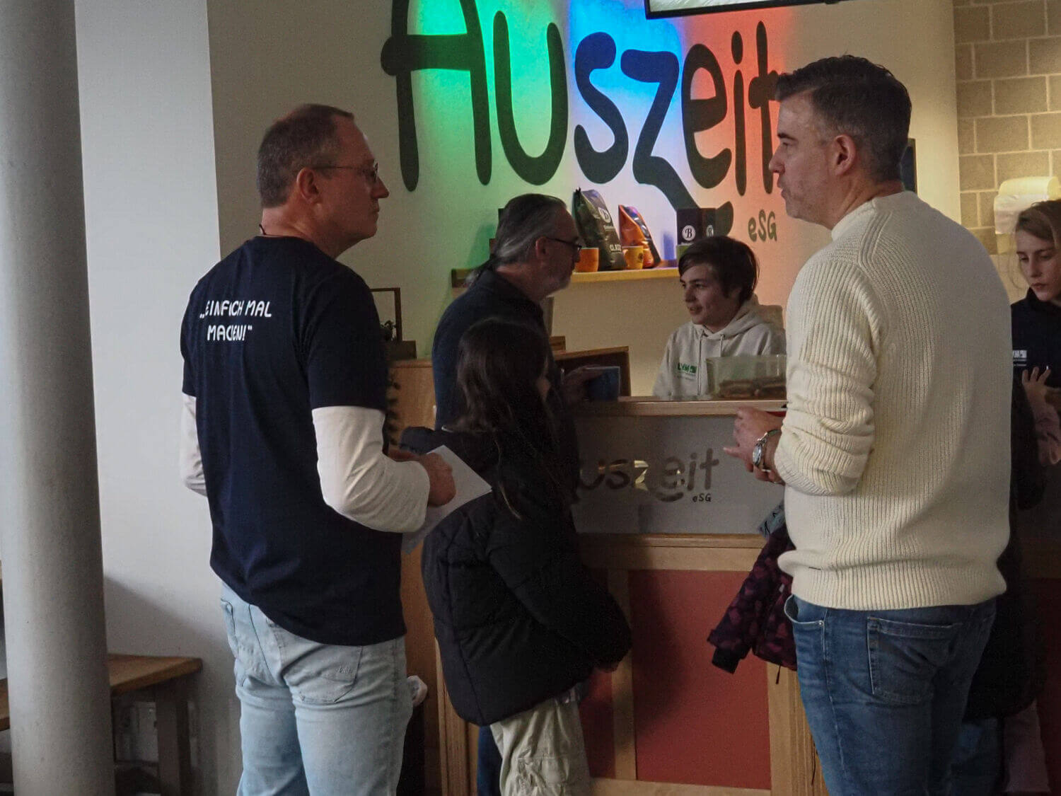 Zum Abschluss stärkten sich viele Gäste im Schülercafé „Auszeit eSG“ mit Getränken, Waffeln und frischem Popcorn. Eltern nutzten die Gelegenheit für Gespräche mit Lehrkräften, Schulpflegschaft, Förderverein und Schülervertretung.
