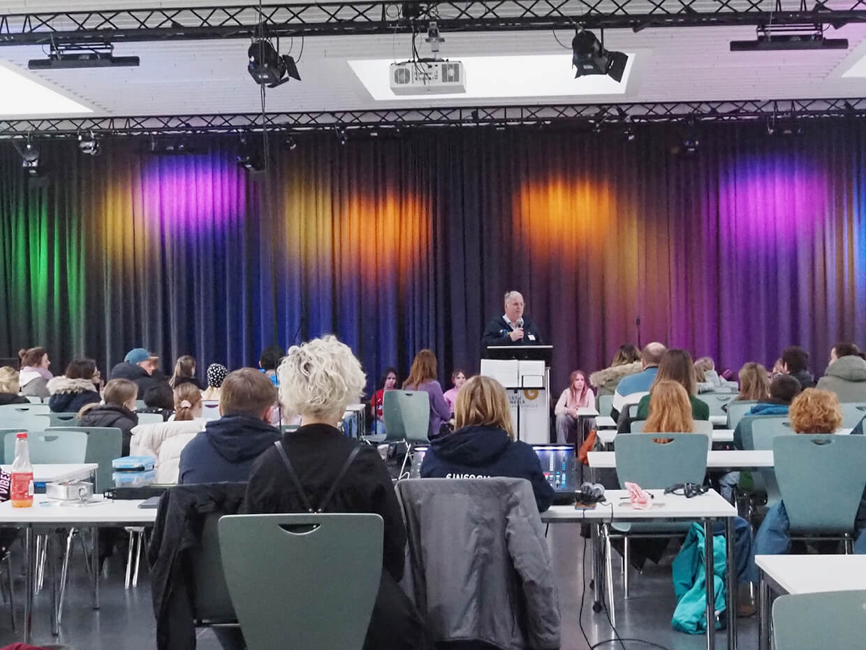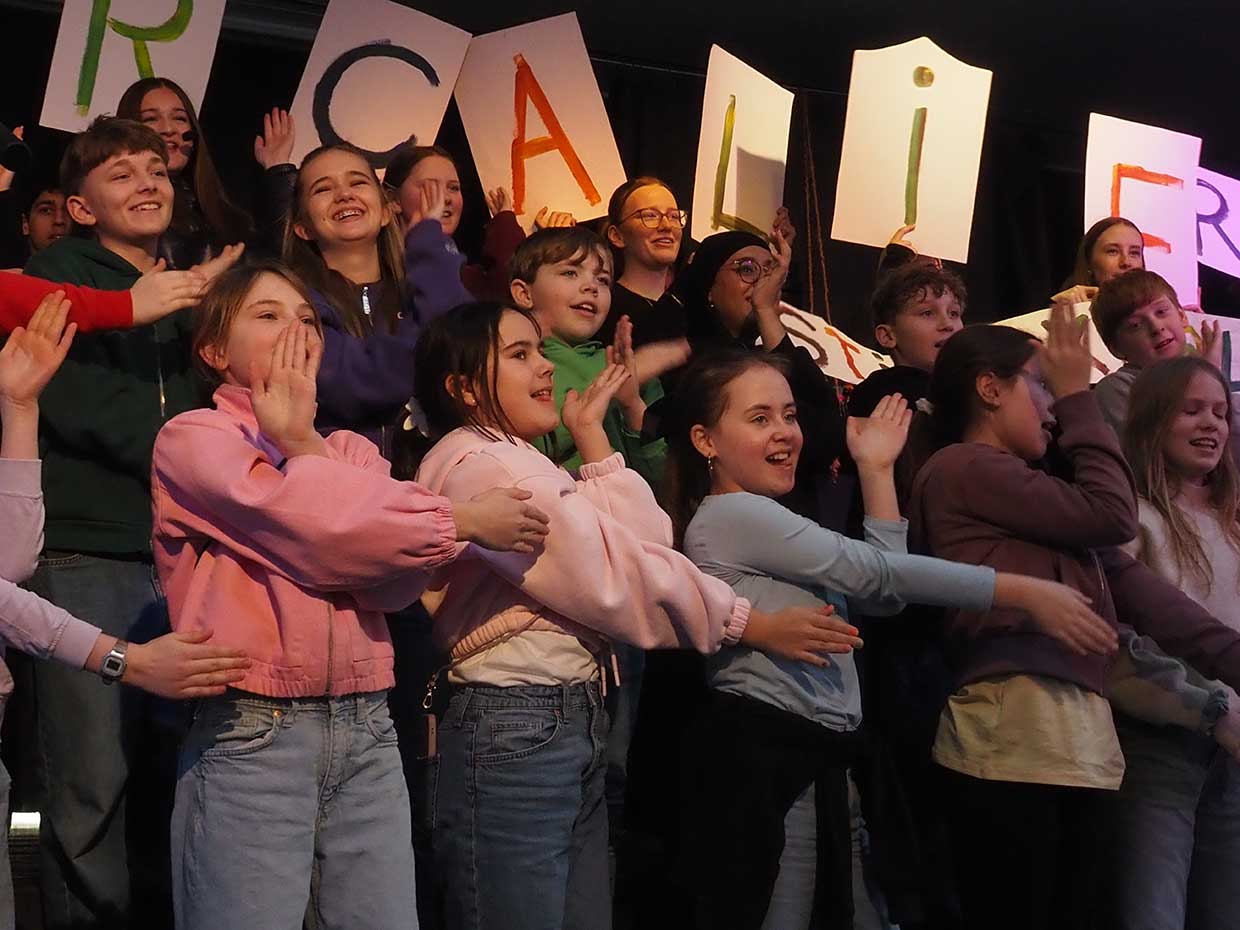Nach der offiziellen Begrüßung durch Schulleiter Ingo Krimphoff und Konrektorin Sandra Rindelhardt präsentierten rund 90 Schüler*innen aus Musical-AG und musisch-künstlerischer Profilklasse einen Ausschnitt aus dem kommenden Sommermusical. Auch die Zirkus-AG zeigte ihr Können.