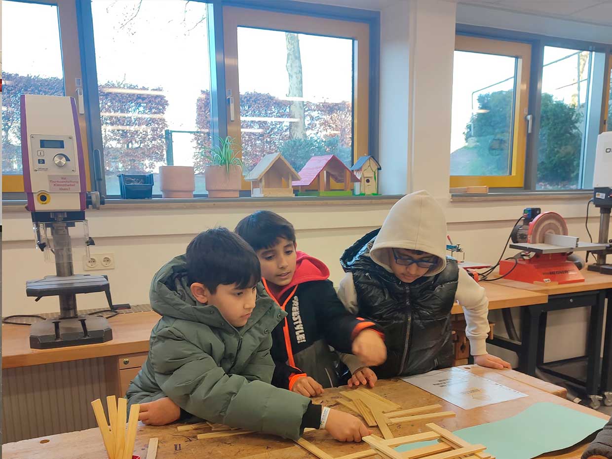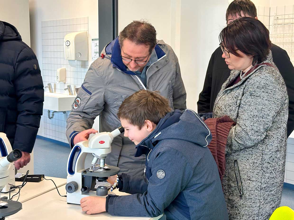 In den Fachräumen konnten die Grundschüler*innen experimentieren, mikroskopieren und im Technikbereich Holzbrücken bauen. Besonders kreativ ging es im musisch-künstlerischen Profil „Hogwarts 2.0“ zu. Zudem erhielten die Familien Einblicke in die Sprachen Spanisch, Niederländisch und Englisch sowie in den Einsatz von iPads im Unterricht.