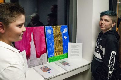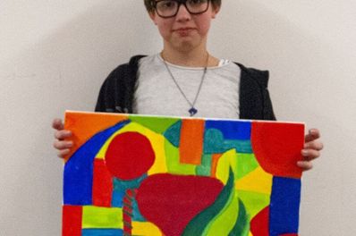 Mit dem Bauhaus und dem abstrakten Künstler Josef Albers befasste sich Leo. Das Gemälde „Hommage to The Square, White Island“ („Huldigung an das Quadrat“) aus dem Jahr 1961, das ausschließlich aus drei verschiedenfarbigen Quadraten besteht, hatte ihm bei der Führung besonders gefallen. „Dabei faszinierten mich vor allem die verschiedenen Ansichten: aus der Vogelperspektive sieht es wie eine Pyramide und aus der Normalperspektive wie ein Tunnel mit einem lichtdurchfluteten Ausgang.“, erklärte Leo.