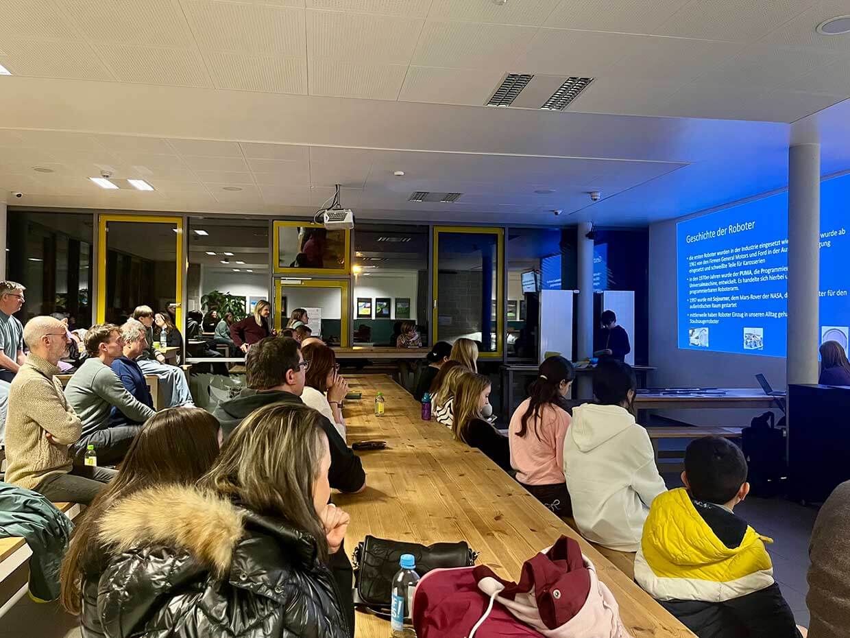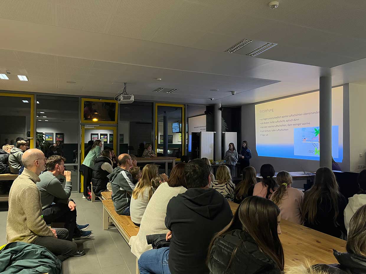 In den vergangenen sechs Monaten hatten die Teilnehmenden die Gelegenheit, eigene Fragestellungen zu entwickeln, intensiv zu forschen und ihre Erkenntnisse in schriftlicher Form und mit einer Präsentation der Öffentlichkeit vorzustellen. Am Ende des Projektes fand in den Räumen der Schülerfirma „Auszeit eSG“ die feierliche Abschlussveranstaltung statt, bei der die jungen Forscherinnen und Forscher ihre Arbeiten präsentierten. Die Themenvielfalt war beeindruckend: Von Raketen und Robotern über Impfungen bis hin zu Chamäleons und ihrem Farbwechsel reichte das Spektrum der Projekte. Auch eine musikalische Darbietung von Heivy (klasse 7b) sorgte für besondere Stimmung und rundete den Abend ab.