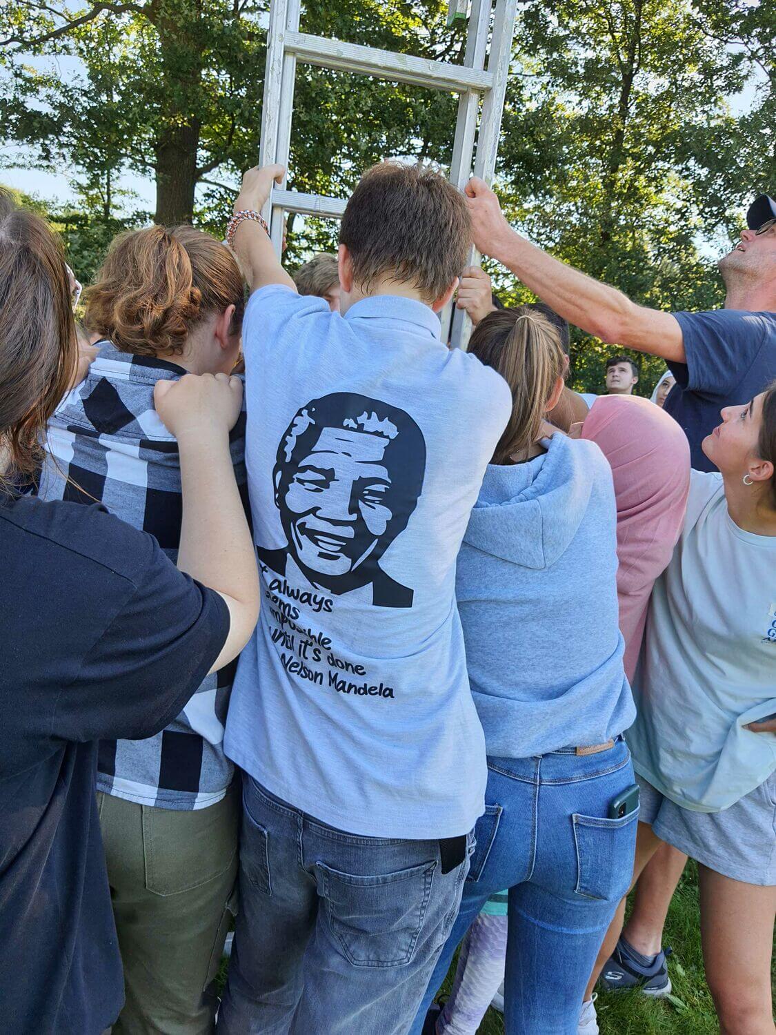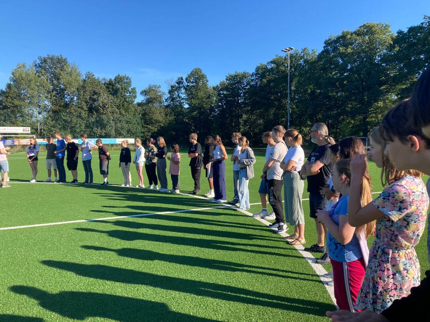 Alle zuvor gewählten Klassensprecher der Jahrgänge 5 bis Q2 haben somit ein Mitspracherecht und eine Stimme bei der Wahl der Schülersprecher. Unsere SV-Tage begannen damit, dass wir uns am Donnerstagmorgen gegen 9 Uhr auf dem Sportplatz des SC Reckenfeld getroffen haben. Dort angekommen wurden wir auch direkt von Herrn Thellman, dem Sozialarbeiter unserer Schule, begrüßt. Danach haben wir uns erstmal alle Namensschilder gemacht. Dies war von großer Bedeutung, da wir im Anschluss direkt ein sogenanntes Speed-Dating gemacht haben. Ziel des Spiels war es, einander besser kennenzulernen und sich gegenseitig vorzustellen. Im Anschluss daran hatten wir dann unsere Frühstückspause, in der wir von Frau Dirting, ebenfalls Sozialarbeiterin an unserer Schule, den Tagesablauf vorgestellt bekommen haben. Außerdem haben auch ein paar von uns miteinander Fußball gespielt. Nach der Pause wurde es noch einmal aufregend, da wir alle gemeinsam die Aufgabe hatten, eine Leiter senkrecht zu halten, währenddessen einer von uns hochkletterte. Ohne Probleme haben wir gemeinsam abwechselnd die Leiter festhalten können, sodass jeder die Leiter besteigen konnte. Besonders bei dieser Aufgabe habe ich gesehen, dass der ein oder andere auch über seine Grenzen hinaus gegangen ist und noch eine Treppenstufe höher klettern konnte als vorher gedacht. Und genau dieses Motto haben wir uns als SV auch besonders auf die Fahne geschrieben: gemeinsam ist man stärker als allein. Nur als Team ist man stark! Und mit dieser Haltung wollen wir uns für unsere Schule und unsere Mitschüler*innen einsetzen! Nachdem wir diese Aufgabe gemeinsam gemeistert hatten, haben wir in der Mittagspause zusammen gegrillt. Immer wieder konnten wir uns gegenseitig kennenlernen und ein Gemeinschaftsgefühl aufbauen.