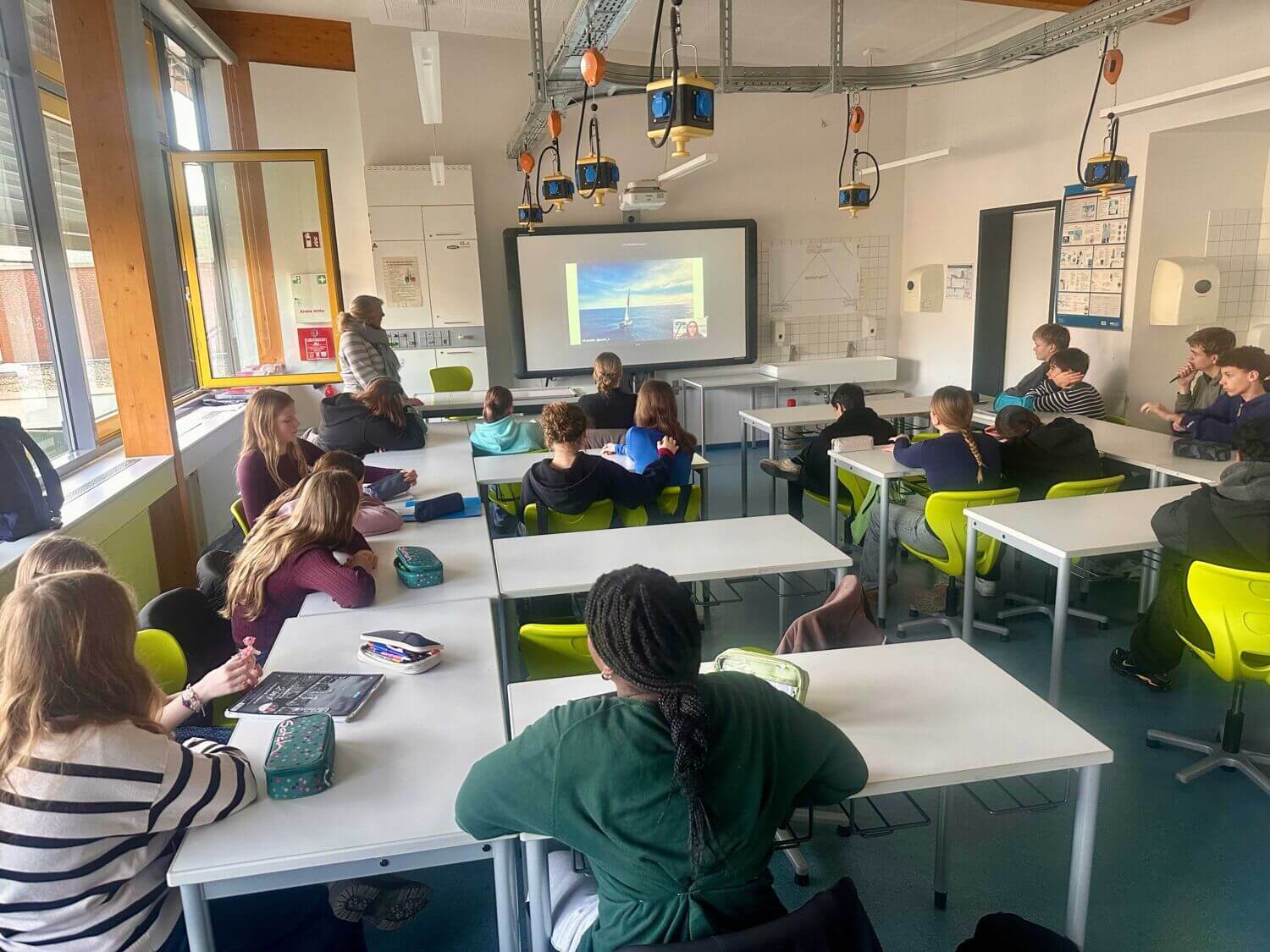 Am Freitag nahm der WP-Kurs Naturwissenschaften des 8. Jahrgangs gemeinsam mit der Fachlehrerin Sonja Bongard an einer besonderen Live-Unterrichtsstunde teil. Direkt aus der Antarktis berichteten Luisa Neubauer, Boris Herrmann und ein internationales Team aus Wissenschaftler:innen von ihrer Expedition an Bord der Malizia Explorer.