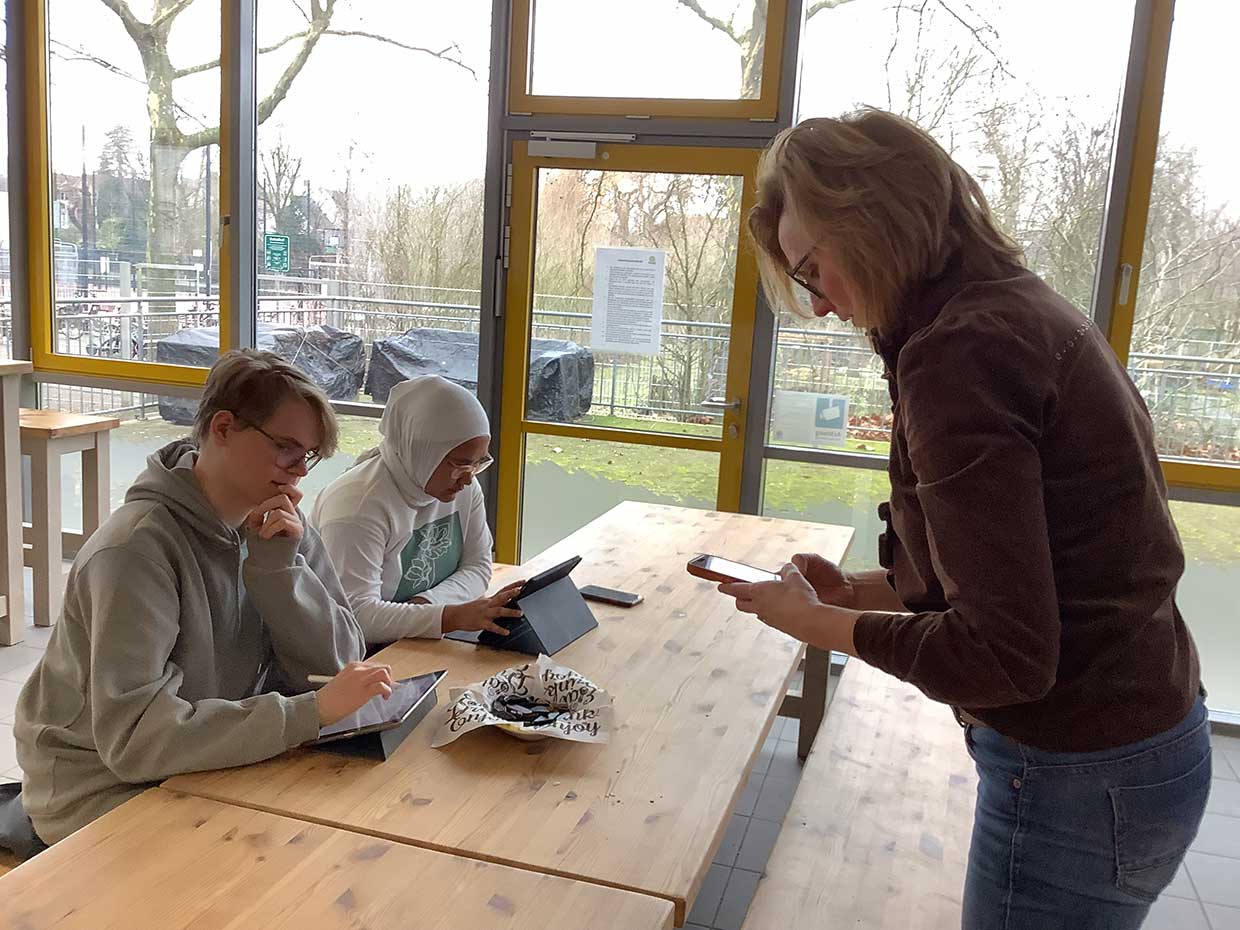 In einem Expertengespräch stellte zunächst EUREGIO-Vertreterin Milou Vaartjes vor, was die EUREGIO ist und welche Rolle sie in der Grenzregion spielt. Anschließend wurden gemeinsam von den Schüler*innen konzipierte Projekte für eine bessere Sichtbarkeit der Besonderheiten unserer Euregio-Region diskutiert.