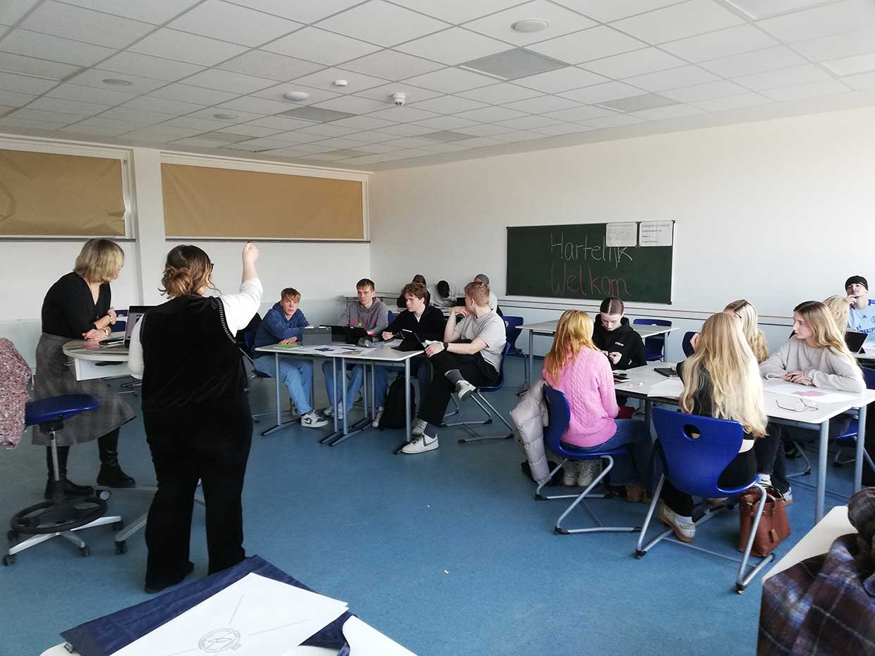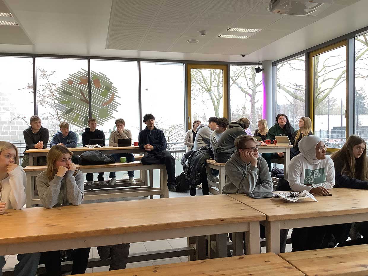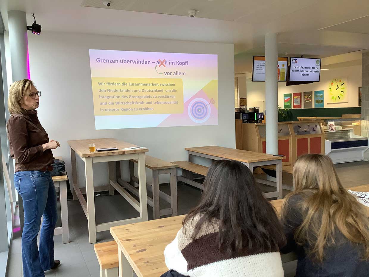 Das gesamte zweisprachige Programm (Deutsch und Niederländisch) richtete sich an die Niederländischkurse der Qualifikationsphase sowie an den Projektkurs Euregio in der Q1. Ziel war es, interkulturelles Verständnis zu fördern und den Blick für die Chancen und Herausforderungen unserer Grenzregion zu schärfen. Diskutiert wurde, was die Euregio auszeichnet, welche Möglichkeiten sie – insbesondere auch für Jugendliche - bietet und warum eine enge Zusammenarbeit zwischen Deutschland und den Niederlanden wichtig für die Stärkung der regionalen Wirtschaft und Lebensqualität ist. Ein zentrales Anliegen: Die Grenze soll im Alltag weniger spürbar sein.
