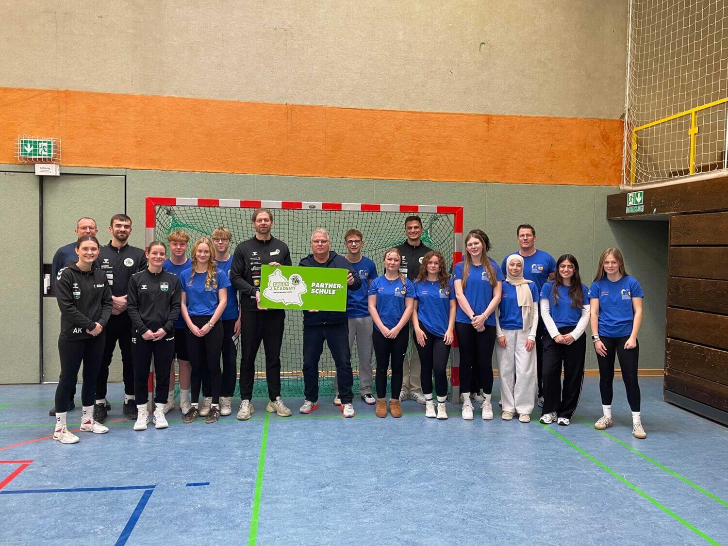 Im Rahmen der vorab ausgearbeiteten Kooperationsvereinbarung zwischen der Green Academy und der Nelson Mandela Gesamtschule überreichte Academy-Leiter Gabor Langhans dem Schulleiter Ingo Krimphoff ein passendes Kooperationsschild, das die Zusammenarbeit von Schule und Verein, auch über die Stadtgrenzen hinaus, verdeutlicht und in Zukunft erfolgreich fortgesetzt werden soll. Auch mit der Handballabteilung des SC Greven 09 wurden bereits erste erfolgreiche Gespräche geführt, die auf eine gewinnbringende Zusammenarbeit in Zukunft hinauslaufen.