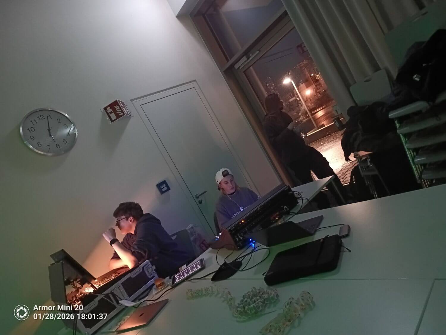 Auch fürs Essen und Trinken war bestens gesorgt. Statt normalem Mensaessen gab es Hotdogs, Süßigkeiten und kalte Getränke, die von der Schülerfirma verkauft wurden. Für Musik und Technik waren Tylor Wortmann und Timo Hülskötter zuständig – zwei ehemalige Schüler unserer Schule. Besonders cool war, dass man sich sogar Lieder wünschen konnte. Viele meinten danach: „Das war richtig nice!“