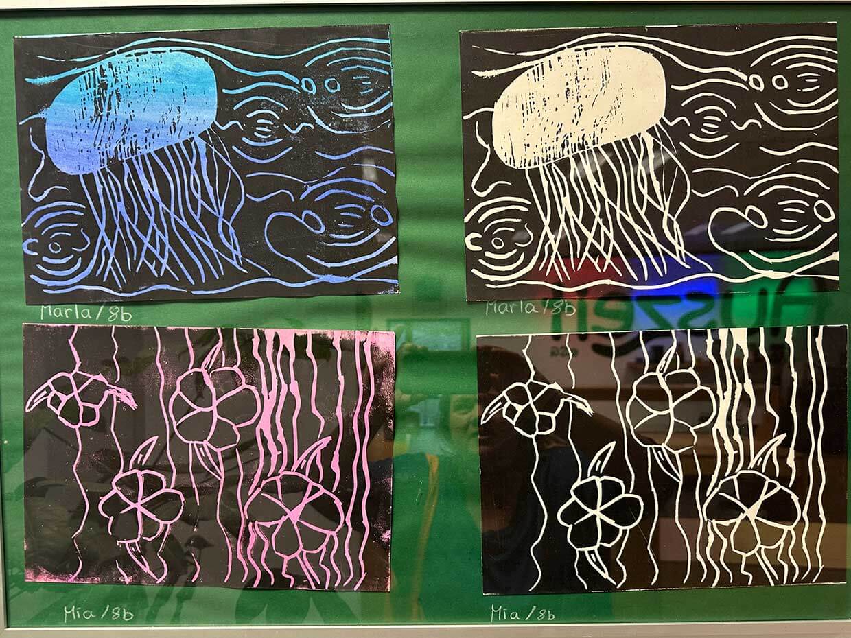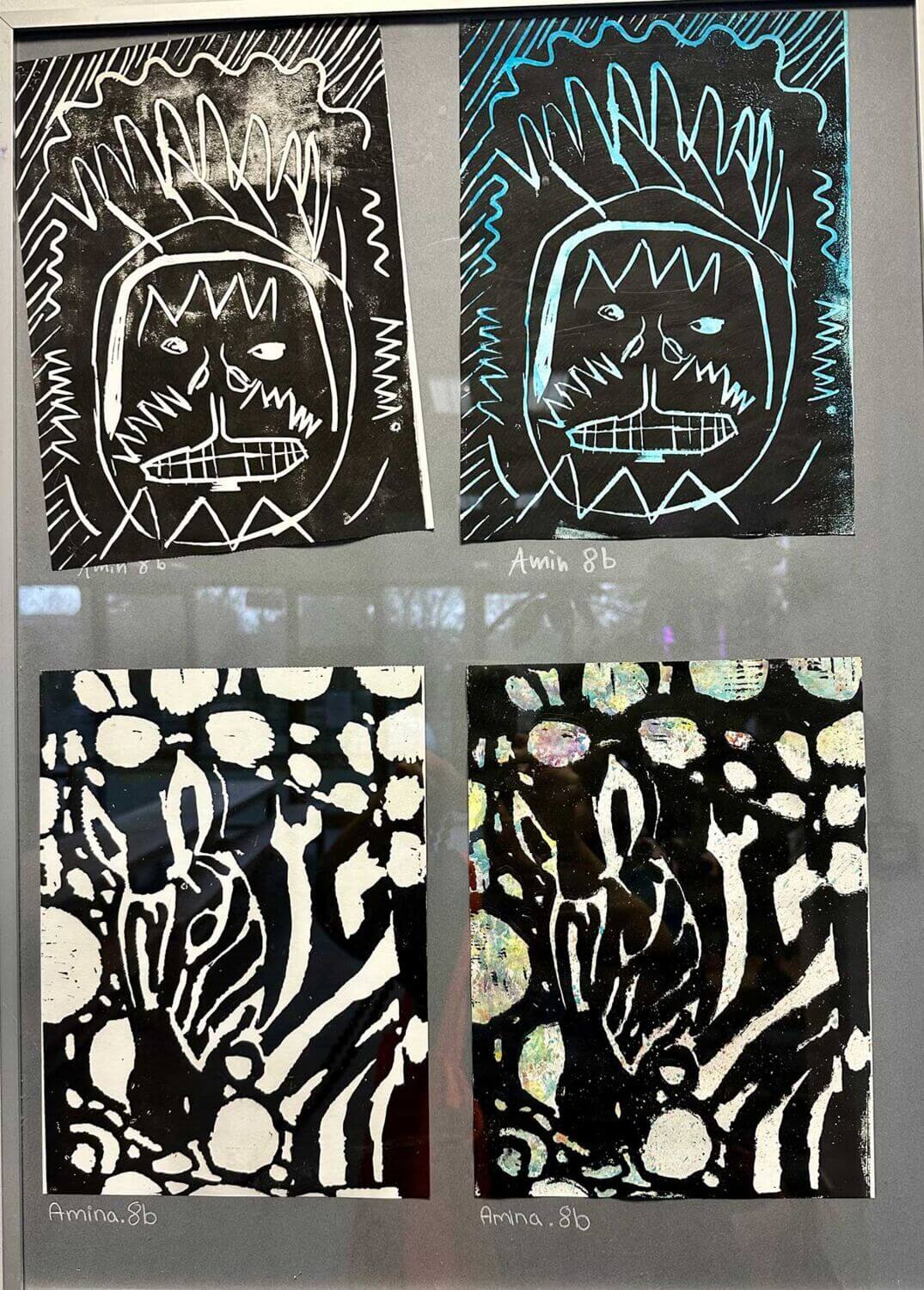 Kreative Kontraste in Schwarz und Weiß – Linolschnitt der Klasse 8b