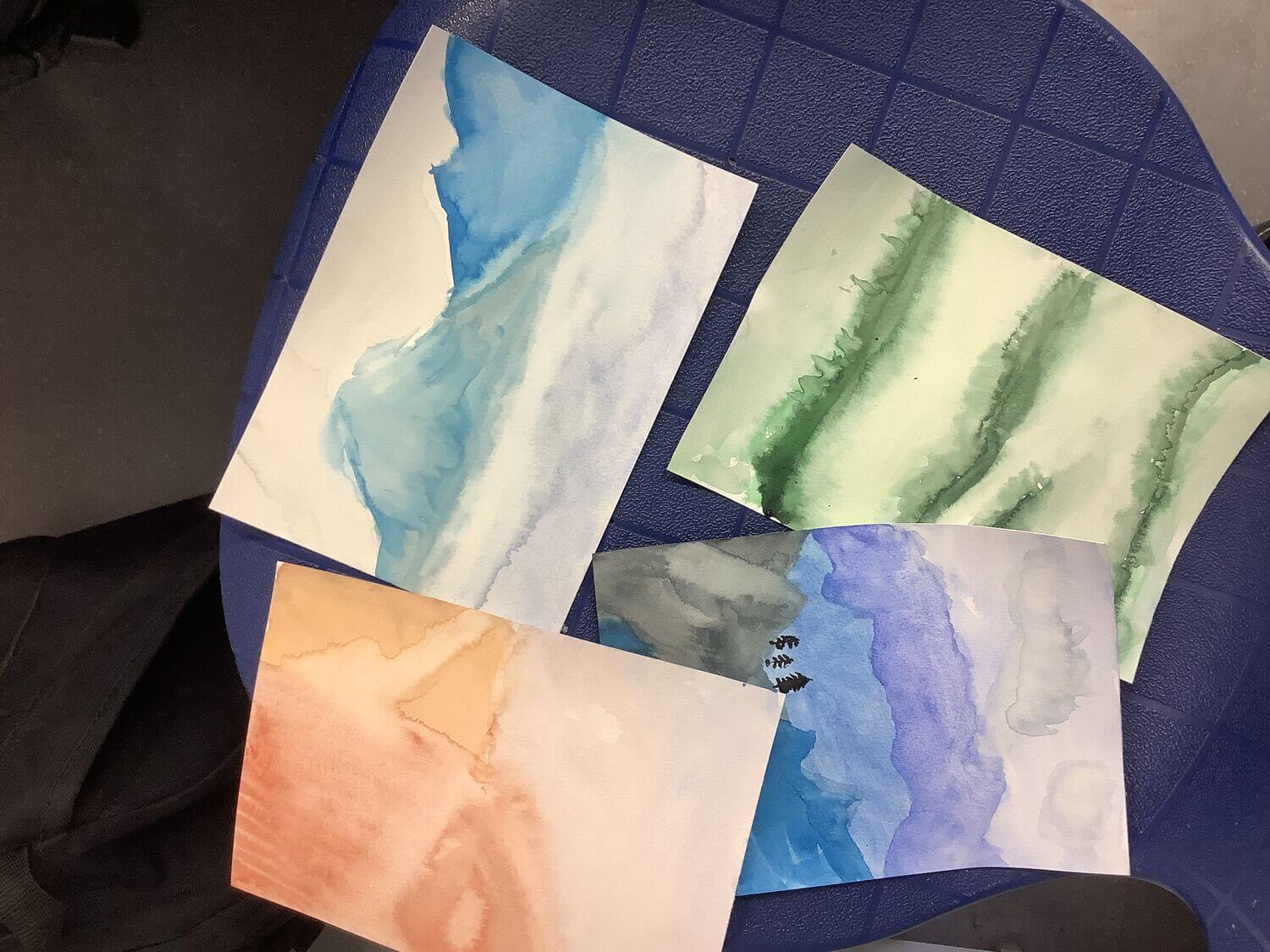 Auch die Abschlussklassen erlebten einen vielfältigen Kulturtag. Einige besuchten im Dortmunder U die Ausstellung *Women Artists in Expressionism and Fluxus: Tell these people who I am“ besucht. Die Schüler*innen wurden durch die Ausstellung geführt und haben sich anschließend kreativ mit ihrem Lieblingskörperteil auseinandergesetzt. Dabei sind kleine Collagen aus Fotos, Zeichnungen und dazugehörigen Beschreibungen entstanden. Andere sahen sich im „Phoenix des Lumières“ eine digitale Kunstausstellung an. Einen Aquarellmal-Workshop bei Künstler Rolf Morschhäuser besuchten die Jugendlichen, die praktisch arbeiten wollten.