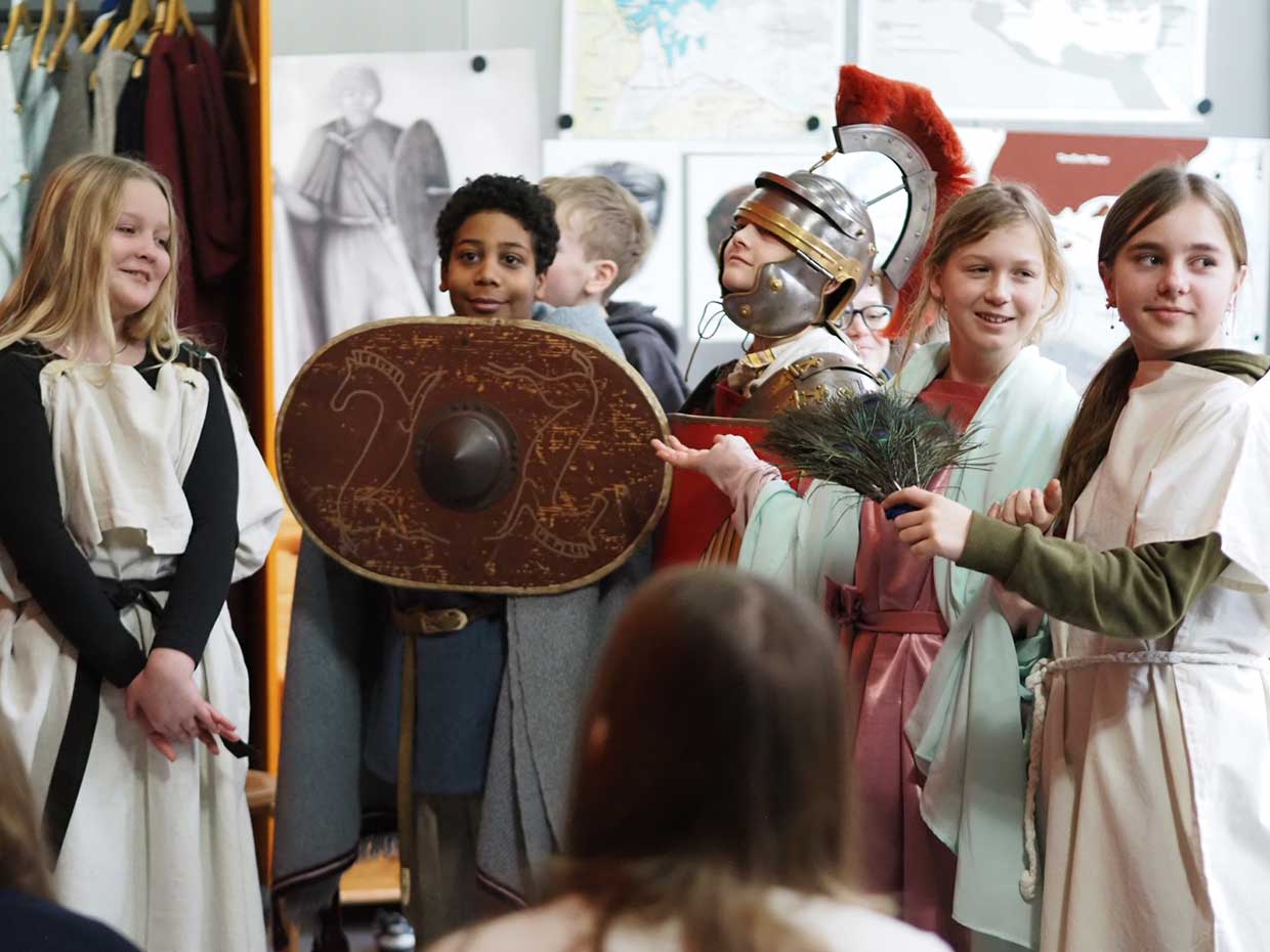 Der sechste Jahrgang begab sich auf die Spuren der Römer. Passend zu den Unterrichtsinhalten im Fach Gesellschaftslehre besuchten alle Klassen das Museum und den Park Kalkriese, den Schauplatz der berühmten Varusschlacht. Bei winterlichem Sonnenschein nahmen die Kinder an interaktiven Führungen teil, die das Leben der Römer und Germanen vor 2000 Jahren anschaulich vermittelten. Besonders begeistert waren die Schülerinnen und Schüler von der Möglichkeit, selbst Gewänder und Rüstungen anzulegen und so hautnah in die Vergangenheit einzutauchen.