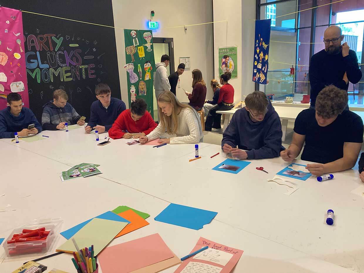 Die Neuntklässler konnten zwischen verschiedenen kulturellen Angeboten wählen. Eine Gruppe besuchte das Puppentheater „Charivari“, während andere den Film Sieger sein im Kino sahen – eine bewegende Geschichte über ein syrisches Flüchtlingskind, das in Berlin über den Mädchenfußball Freundschaften knüpft und sich in einem neuen Umfeld behauptet. Zudem gab es ein „Book-Casting“, bei dem die Schülerinnen und Schüler aus vier Büchern pro Genre ihren Favoriten kürten. Nach einer Auswahlrunde anhand von Titeln und Covern wurden die Klappentexte vorgelesen, bevor die endgültige Entscheidung fiel. Die Genres reichten von Freundschaft und Liebe über Fantasy bis hin zu Sachbüchern und Krimis. Anschließend hatten die Teilnehmenden die Möglichkeit, in den Büchern zu schmökern und vielleicht ein neues Lieblingsbuch zu entdecken. Auch ein Besuch des Konzerthauses Dortmund, des Theaters Münster und ein Stimmbildungsworkshop für Bühne und Vortrag bei Atem-, Sprech- und Gesangslehrerin Jennifer Sünderkamp standen zur Auswahl. Mit Lehrerin Christiane Lohmann konnte außerdem am Bühnenbild und der Requisite fürs anstehende Musical gearbeitet werden.