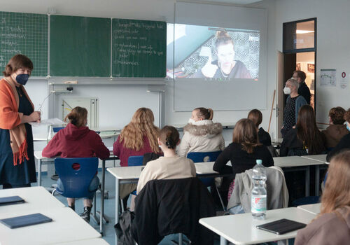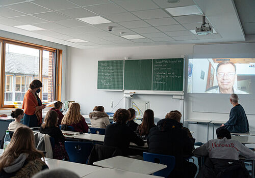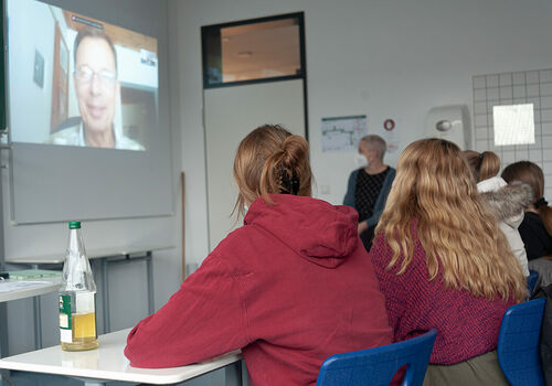 Im Rahmen des regelmäßig für alle zwei Jahre angesetzte Nelson-Mandela-Tages der Gesamtschule sprach van Dijk eine Stunde lang via Zoom in zwei Räumen live mit 40 Oberstufenschüler der Q2 sehr offen über seinen persönlichen und beruflichen Werdegang und die aktuelle Situation in Südafrika zu Corona-Zeiten. Dilara Usta und Antonia Eixler, zwei Schülerinnen des Sowi-Kurses der Q2, moderierten durch das einstündige Gespräch. Sie hatten gezielt Fragen vorbereitet auch auf Grundlage der Zeitungsartikel des Gesprächspartners, der regelmäßig über die aktuelle Entwicklung in den Ländern des südlichen Afrikas in deutschen Tageszeitungen berichtet.