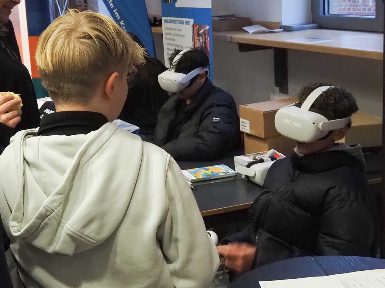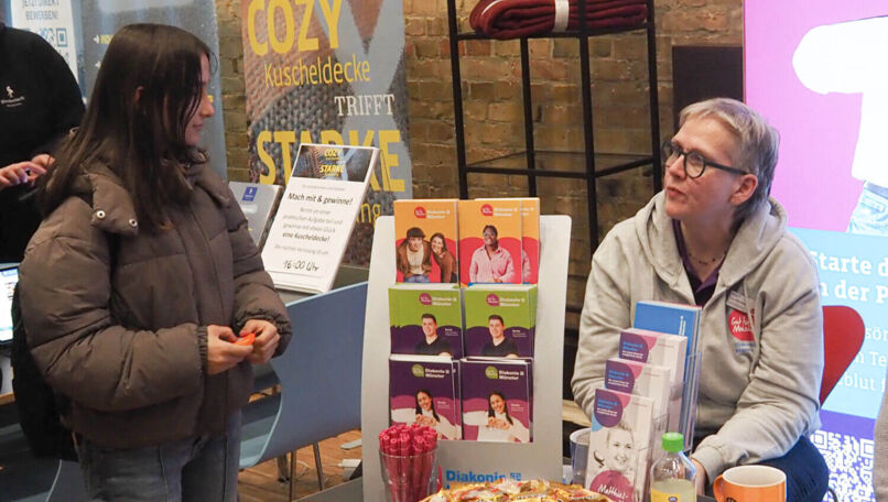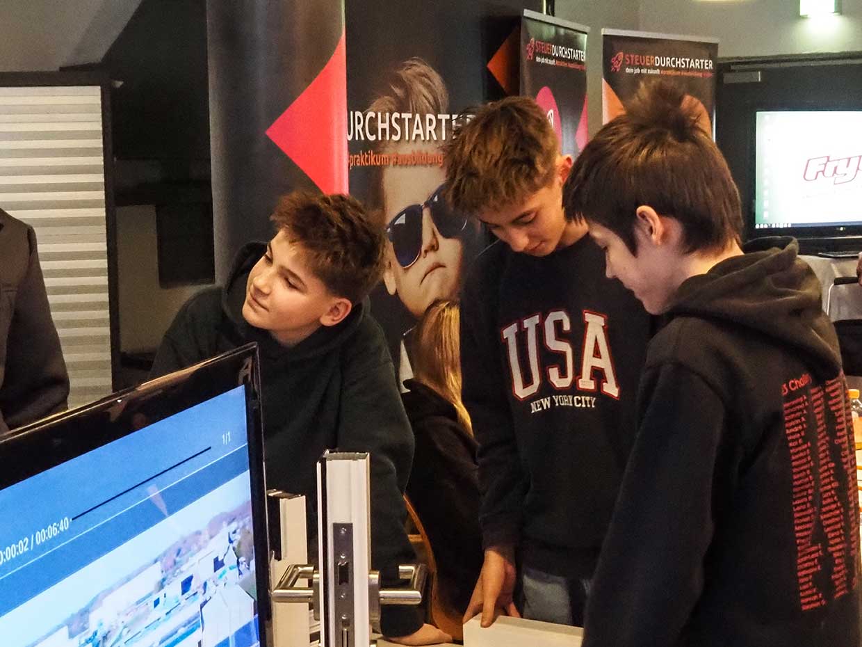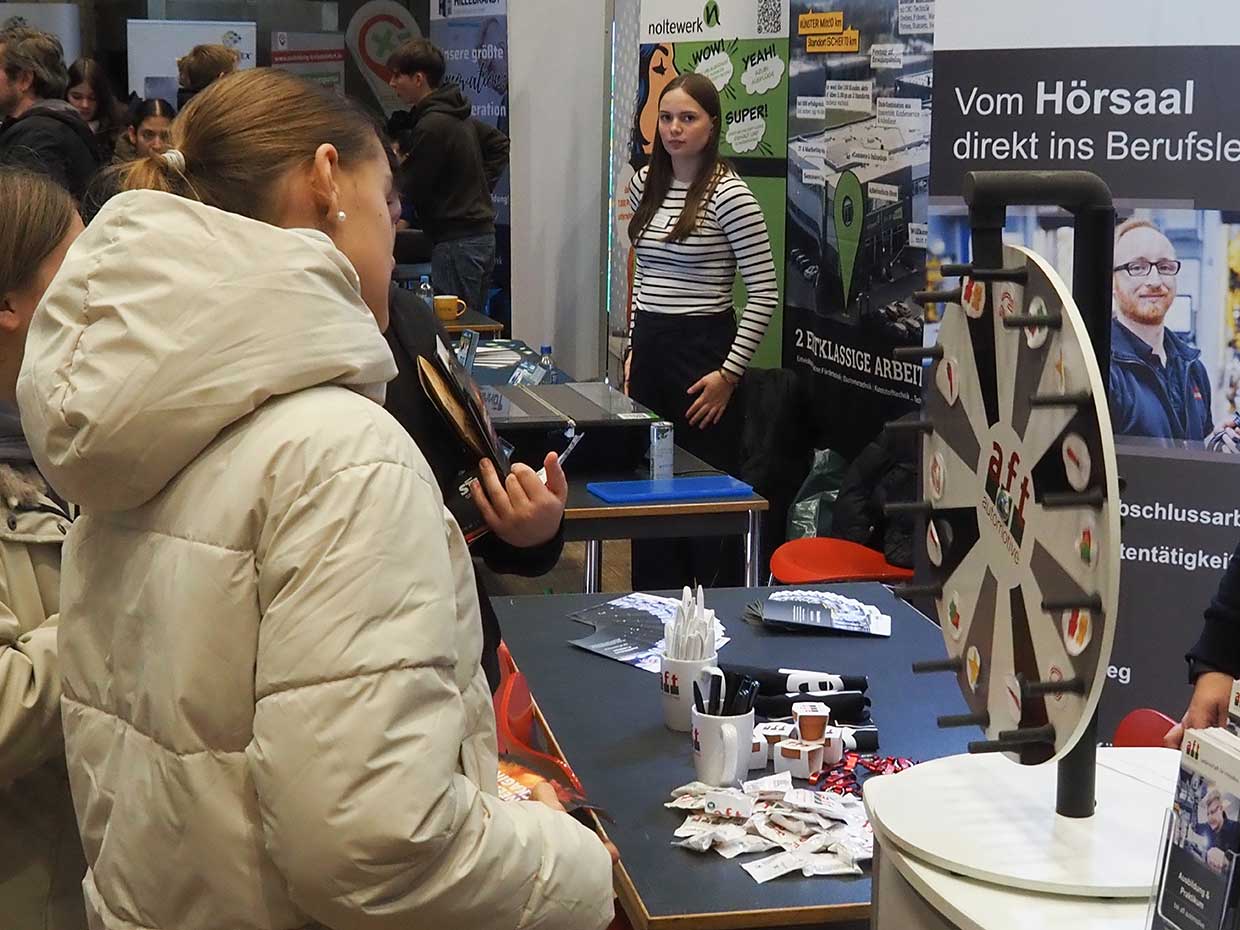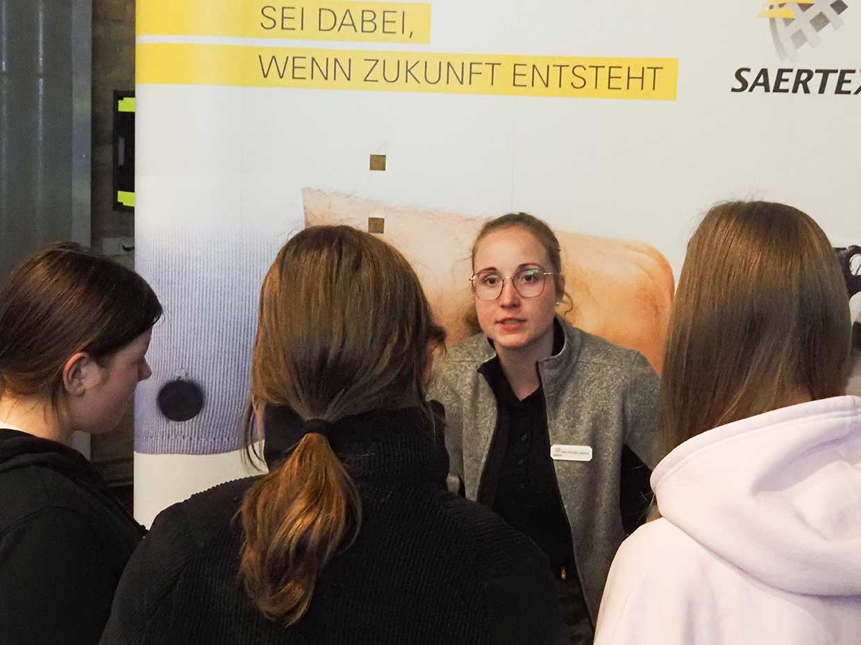 Am Nachmittag war die Messe offen für alle Interessierten – von Arbeitssuchenden über Berufsumsteiger bis zu jüngeren Schülerinnen und Schülern, die sich einfach einen ersten Eindruck verschaffen wollten. So hatte der gesamte 8. Jahrgang sich spontan entschlossen, mit ihren Klassenlehrerteams die Messe in der letzten Stunde zu besuchen.