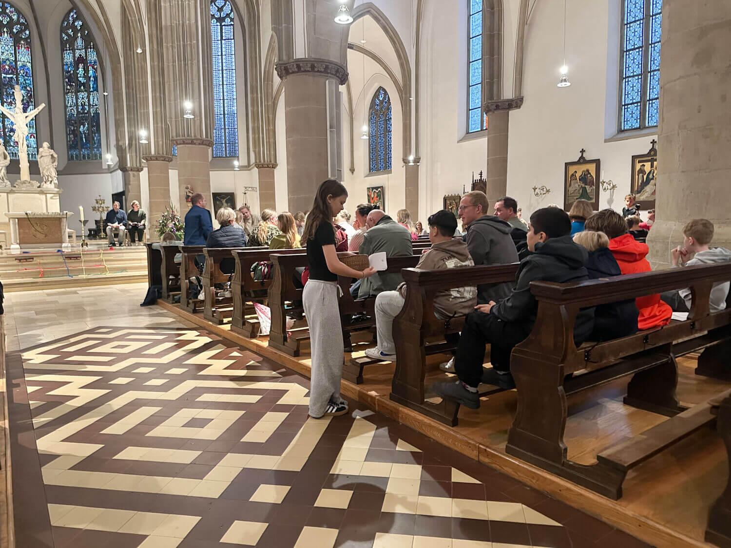 Auch die Fürbitten waren kreativ gestaltet. Alle Kinder der neuen Klassen schrieben ihre Wünsche für die kommenden Jahre an der Schule auf und diese wurden anschließend vorgetragen. So entstand eine persönliche und berührende Sammlung an Hoffnungen, die den Gottesdienst bereicherte. Viele Eltern begleiteten ihre Kinder und trugen dazu bei, dass die Feier zu einem besonderen Start in die neue Schulzeit wurde.