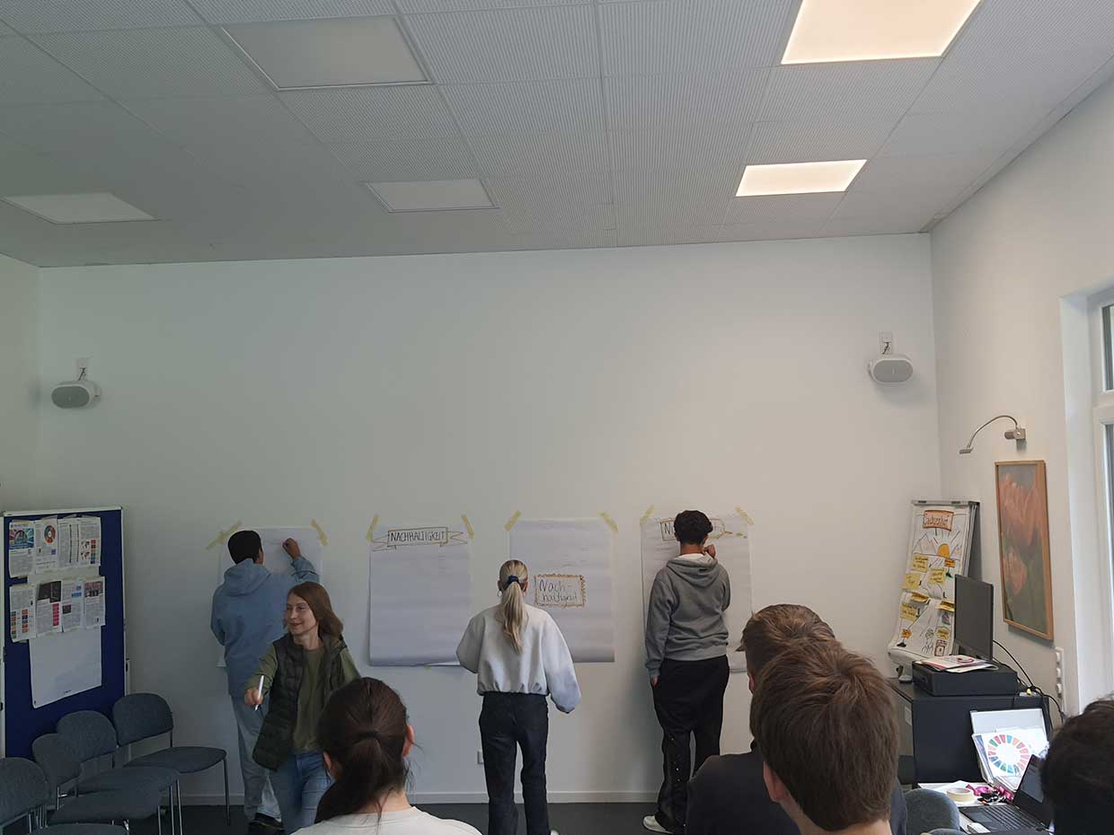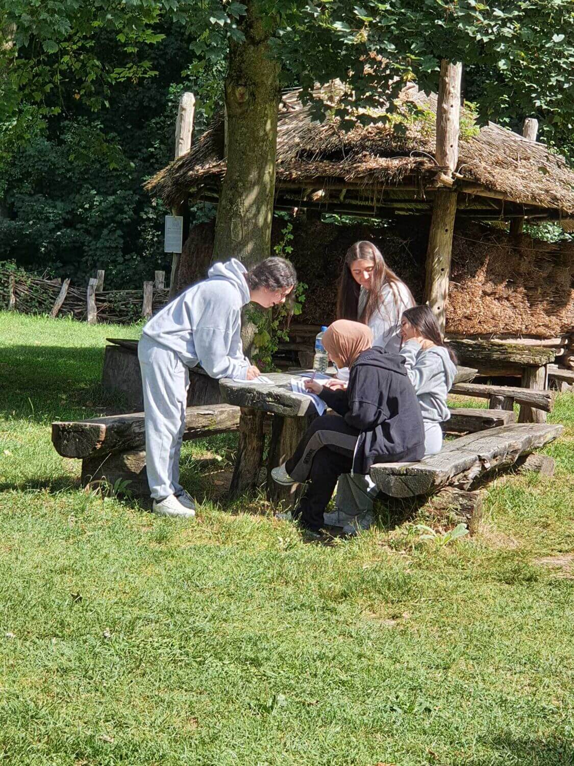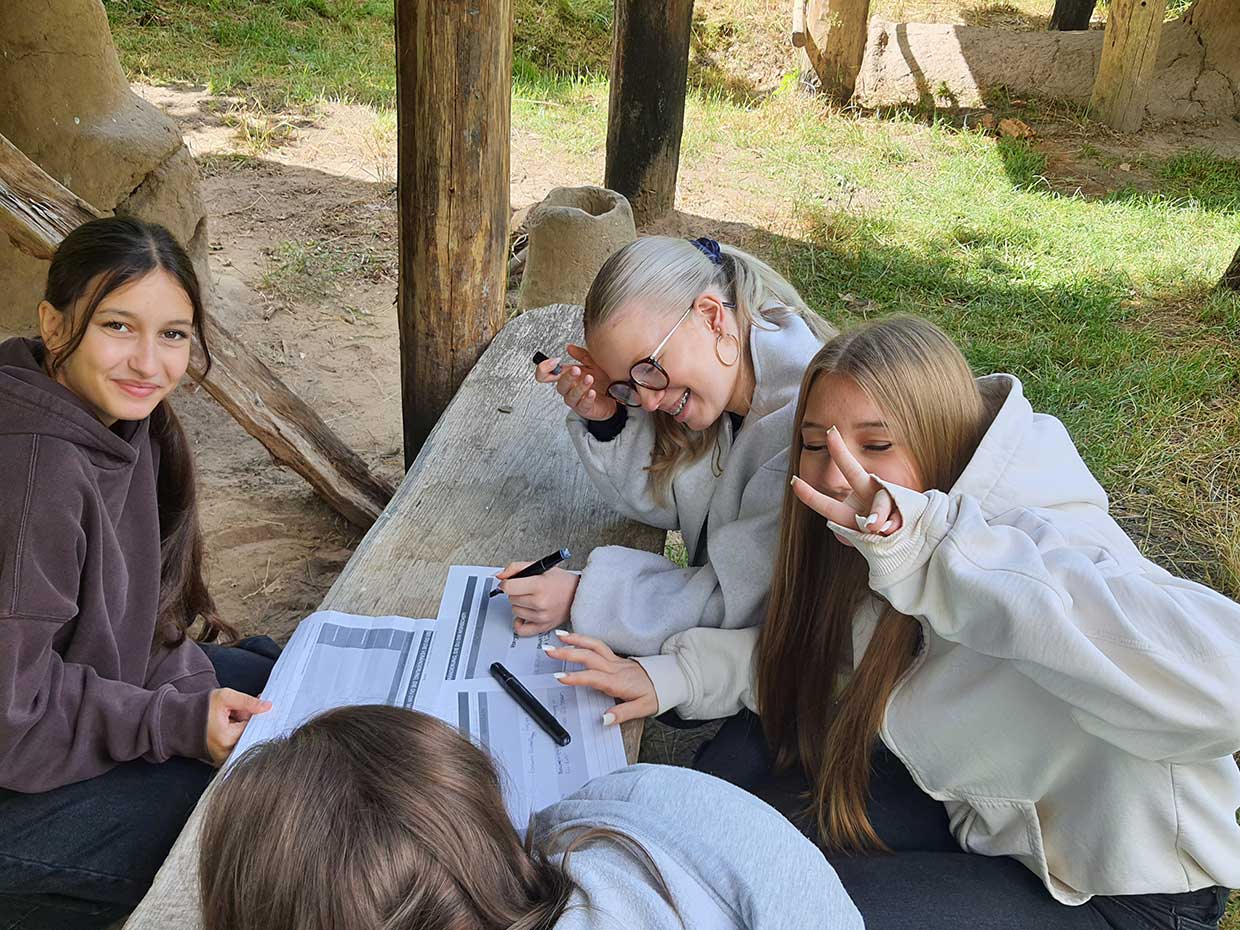 Der historische Lernort, eine aufwendig rekonstruierte Hofanlage aus der Zeit um 800 n. Chr., diente als besondere Kulisse für einen Workshop zum Thema Nachhaltigkeit. Ziel des Projekttages war es, den Schülerinnen und Schülern die Bedeutung nachhaltigen Handelns durch interaktive und schüler*innenaktivierende Methoden näherzubringen. Dabei stand besonders die Auseinandersetzung mit den Sustainable Development Goals (SDGs) der Vereinten Nationen im Mittelpunkt. Die intensive Beschäftigung mit den globalen Nachhaltigkeitszielen und deren Bedeutung für den Alltag führte am Ende des Workshops zur Entwicklung zweier konkreter Projektideen: „Papier sparen durch Digitalisierung“, ein Vorhaben, das die Klasse im kommenden Schuljahr umsetzen möchte, sowie ein Schulprojekt zur Kleiderspende, das ein Zeichen gegen Fast Fashion setzen soll. Die Klassenleitung zeigte sich beeindruckt vom Lerneffekt des Workshops: „Die Verbindung von Geschichte und Zukunftsfragen hat unsere Schülerinnen auf ganz besondere Weise erreicht,“* betonte Sandra Blumenthal-Balsbering. Auch Anil Kocak lobte die methodische Vielfalt und den nachhaltigen Lernerfolg. Der Workshop wurde von der Klasse ausdrücklich empfohlen – nicht zuletzt, da auch die Fahrtkosten dankenswerterweise übernommen wurden.
