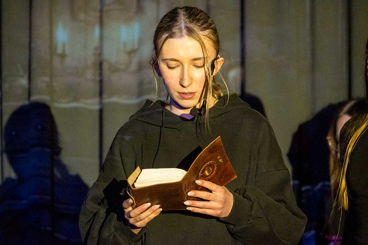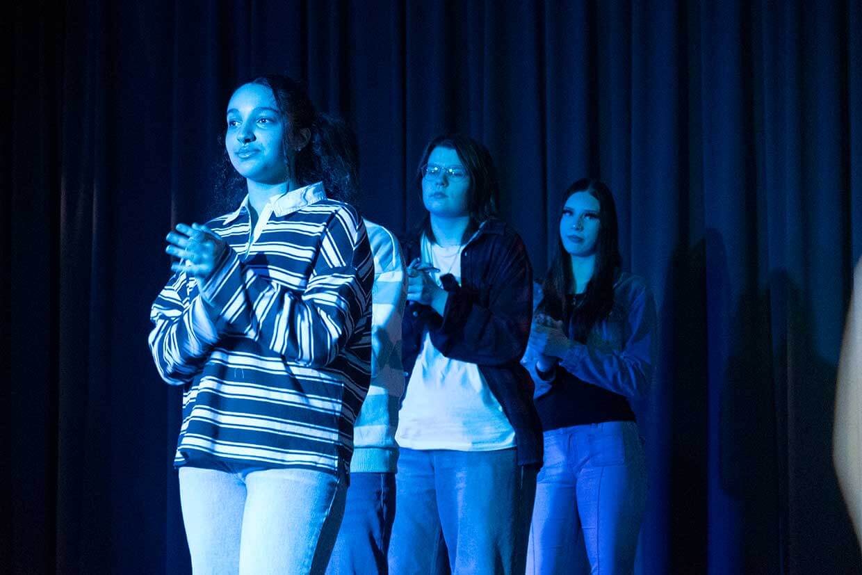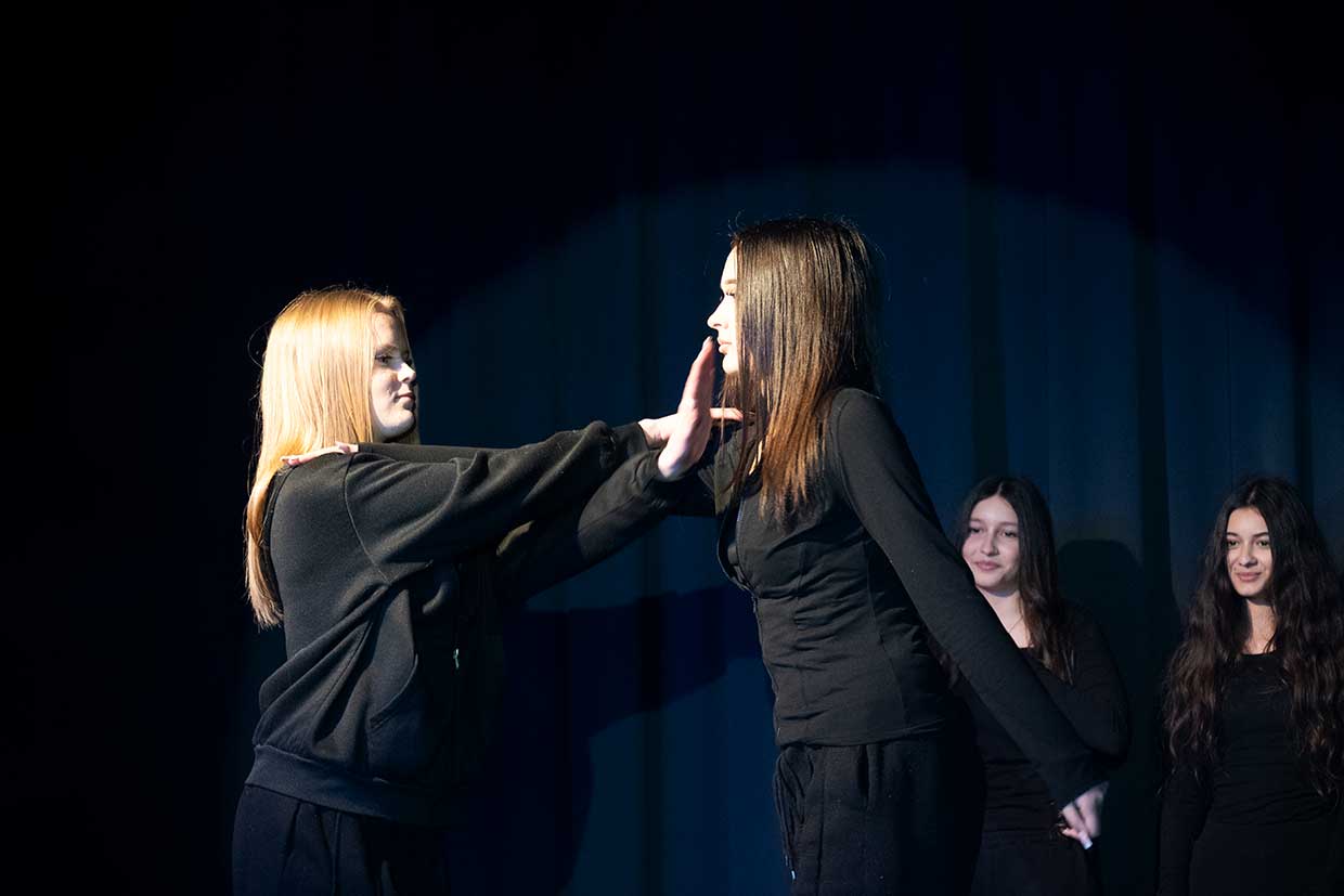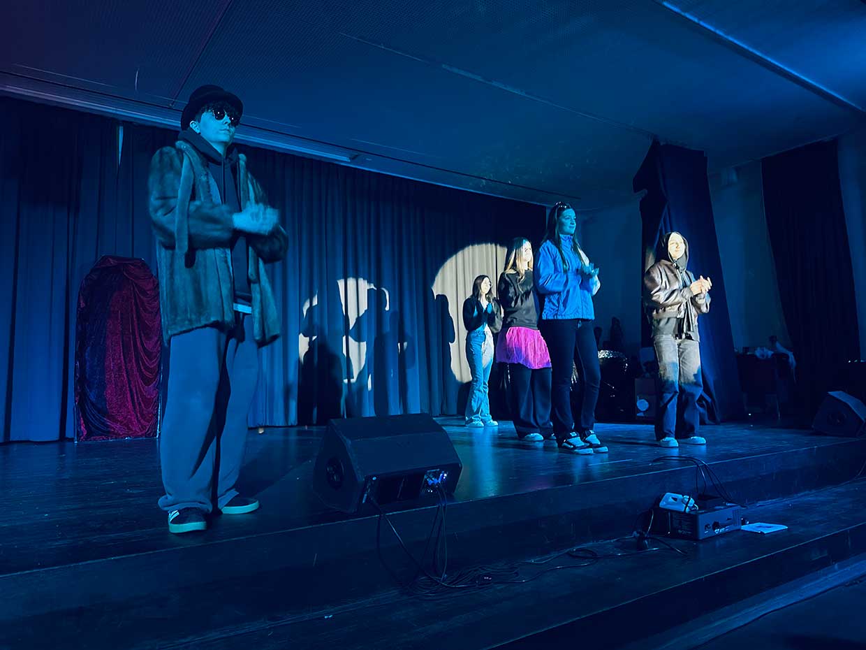 Mit viel Kreativität und Ausdruckskraft nahmen die jungen Darstellerinnen und Darsteller das Publikum mit auf eine Reise durch die Facetten der Nacht. Ob in der pulsierenden Großstadt, im Nachtclub, im Park oder an der Bushaltestelle – die Inszenierungen zeigten, dass Nacht weit mehr bedeutet als Dunkelheit. Sie kann geheimnisvoll oder bedrohlich wirken, still und verträumt sein oder ein Gefühl von Freiheit vermitteln. Die unterschiedlichen Szenen eröffneten vielfältige Blickwinkel und machten die besondere Atmosphäre der Nacht eindrucksvoll erlebbar.
