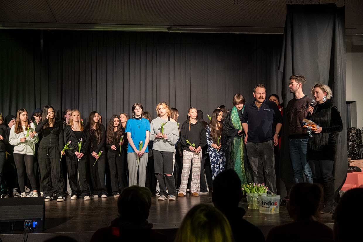Der langanhaltende Applaus am Ende war ein deutliches Zeichen der Anerkennung für alle Beteiligten. Die Kursleitungen Paul Jacobsen, Kerstin Hochhaus und Axel Kuhn würdigten den Einsatz der Jugendlichen und überreichten ihnen als Zeichen der Wertschätzung eine Tulpe – für Mut, Kreativität und Durchhaltevermögen.