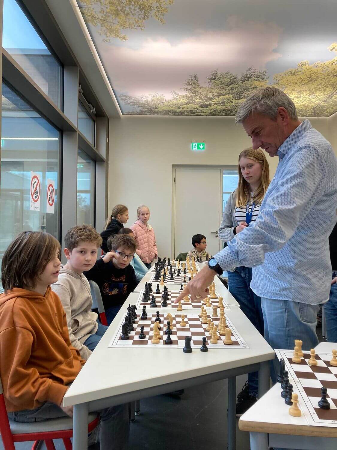 An drei aufeinanderfolgenden Tagen spielte Herr Bappert simultan gegen die jungen Strateginnen und Strategen. Dabei ging er von Spielbrett zu Spielbrett und hatte pro Zug 30 Sekunden Zeit – während die Schülerinnen und Schüler ihre Bedenkzeit nutzen konnten, um gemeinsam Taktiken zu besprechen, Züge zu beraten und Strategien zu diskutieren. Die besondere Stimmung des Turniers war dabei von Ehrgeiz und Teamgeist geprägt: Einige Teilnehmende nahmen bereits zum wiederholten Male teil, während Mitschülerinnen und Mitschüler ihre Freundinnen und Freunde als Coaches und Berater unterstützten.