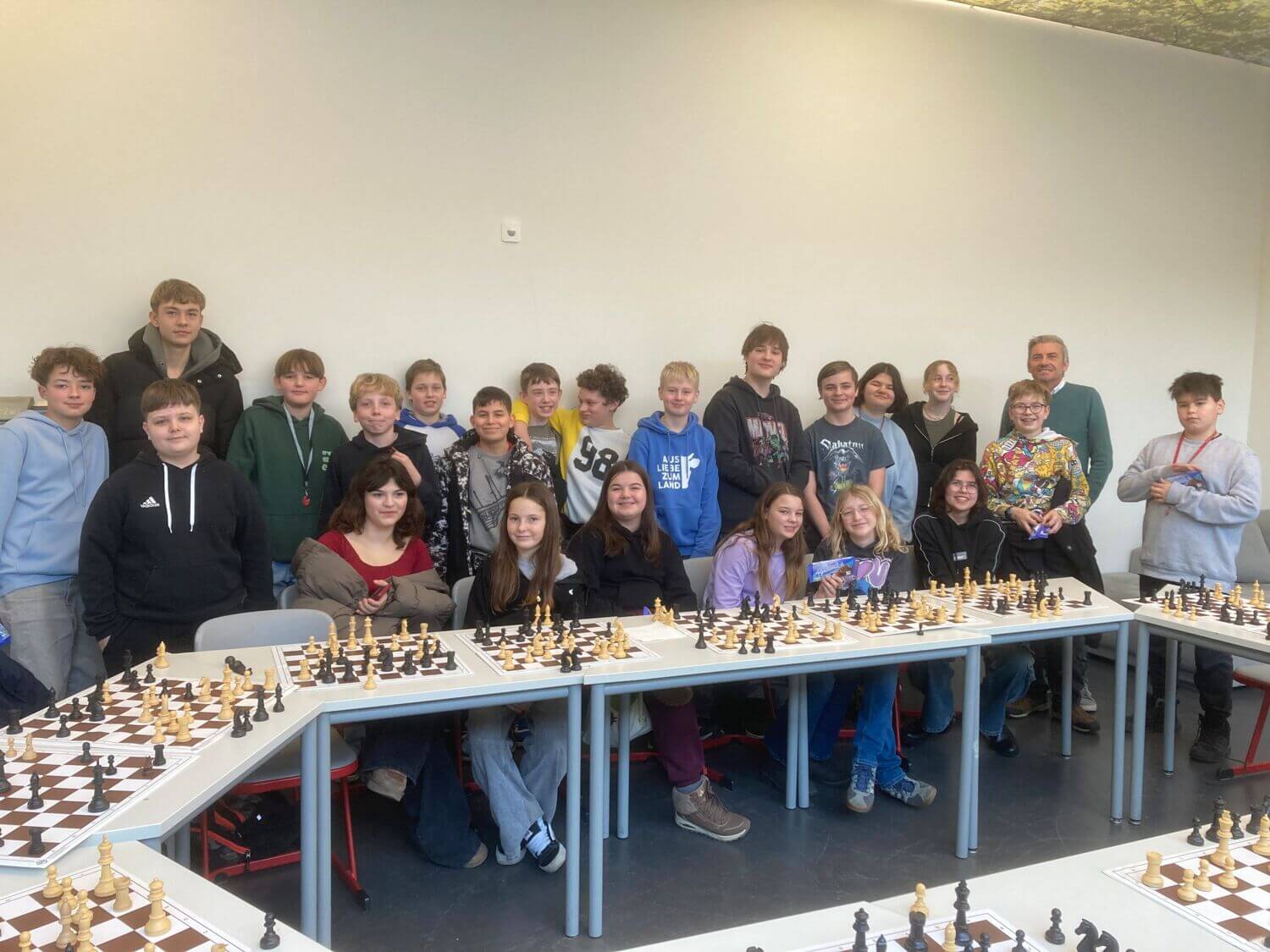 Das Turnier 2025 war ein großer Erfolg: Von 51 Spielen konnten die Schülerinnen und Schüler 13 Siege und 7 Remis erzielen – beachtliche Ergebnisse, die den Fortschritt und die Schachkompetenz der Teilnehmerinnen unterstreichen. Jeder Teilnehmer*in erhielt als kleine Anerkennung einen schokoladigen Preis.