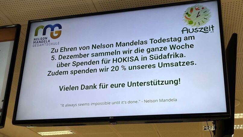Im Rahmen dieser Gedenkwoche spendet die Auszeit 20 Prozent aller Einnahmen an das HOKISA-Kinderhaus in Südafrika. Das Kinderhaus unterstützt Kinder, die in besonders schwierigen Lebenssituationen aufwachsen, und bietet ihnen Schutz, Betreuung, Bildungsangebote und eine verlässliche Gemeinschaft. Ein besonderer Höhepunkt der Woche war ein Video-Call der Auszeit-Kids mit Lutz van Dijk, dem Mitbegründer von HOKISA. In diesem Austausch berichtete er über die Bedeutung Nelson Mandelas, über das genossenschaftliche Prinzip in der Kinderhausarbeit sowie über globale Fairness und Verantwortung. Wir danken Lutz van Dijk herzlich für seine Zeit und seinen inspirierenden Beitrag.