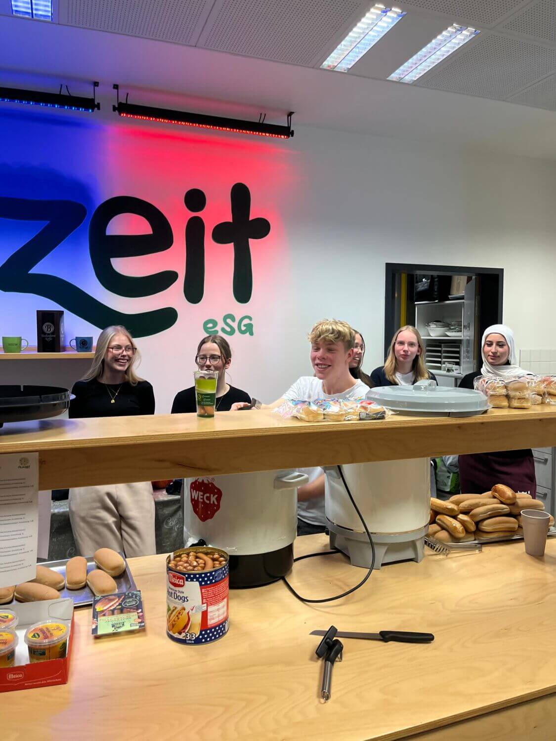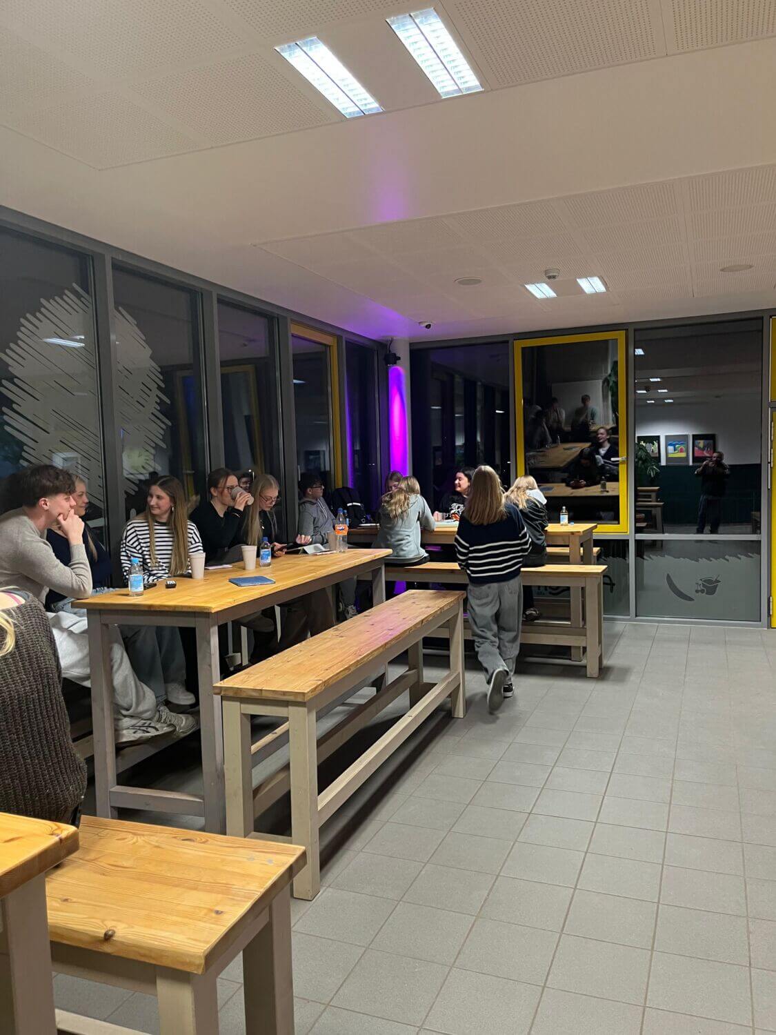 The evening was accompanied by a suitable culinary program. Students enjoyed hot dogs in a variety of versions as well as a tiramisu, which was kindly organised by Klosi. Food and drinks were provided free of charge for all students. The costs of the event were shared by Die Auszeit and the school’s support association (Förderverein).