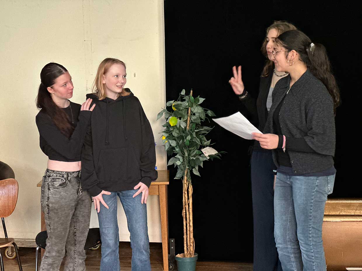 Im Rahmen dieses Programms hatte am Donnerstag vor den Weihnachtsferien auch die Klasse 8b die Gelegenheit, eine Vorstellung im Theater Münster zu besuchen. Auf dem Programm stand das Jugendtheaterstück „Und dann noch …“, das im Kleinen Haus aufgeführt wird.