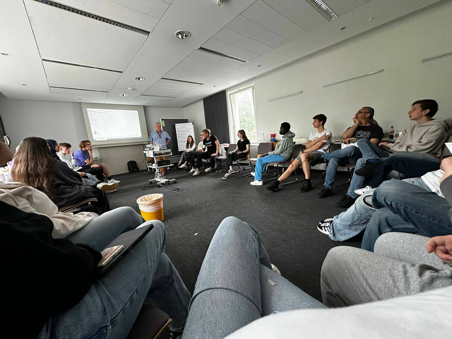 Schon früh am Morgen hatte sich eine Gruppe mit 10 SchülerInnen der Jahrgänge 8 bis Q1 zusammen mit den SchulsozialarbeiterInnen Kerstin Dirting und Hans Thellmann auf den Weg nach Bonn gemacht, um dort an einem Seminar des politischen Arbeitskreises an Schulen e.V. (PAS) teilzunehmen. Die Aktion wurde im Rahmen der SV-Arbeit initiiert, und die teilnehmenden Schüler*innen waren zum Teil aktive Schülervertreter*nnen, aber auch solche, die sich im Schulleben in anderen Projekten engagieren. Insbesondere die jüngeren Teilnehmenden konnten von den Erfahrungen der älteren Schüler*innen, wie zum Beispiel Schülersprecher Luis Lönne aus der Q1, profitieren. Eine weitere Besonderheit dieser Fahrt bestand darin, dass auch eine Gruppe von SV-SchülerInnen der KvG-Gesamtschule in Nordwalde mit dabei war, und die Jugendlichen von zwei benachbarten Gesamtschulen sich besser kennenlernen konnten.