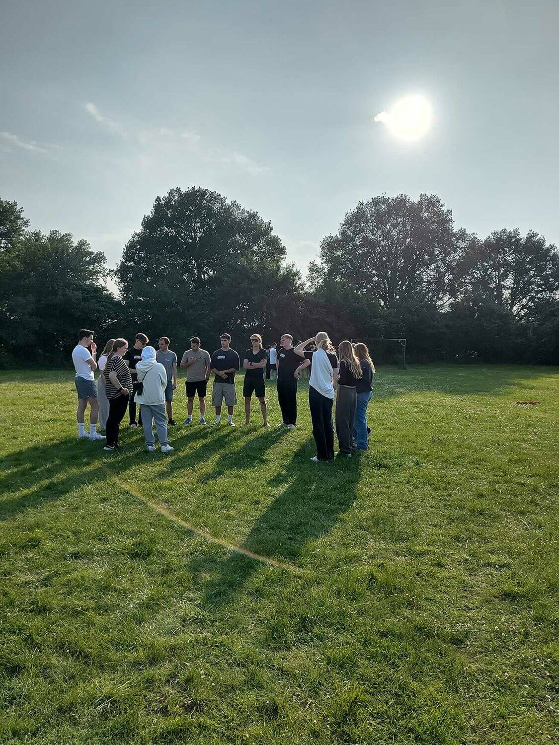 Damit rund 60 Sechstklässler*innen nach den Sommerferien eine ganze besondere Woche unter dem Motto "Wir bewegen Jugend - Jugend bewegt sich" erleben können, stand im Vorcamp neben organisatorischen Punkten vor allem die fachliche und pädagogische Ausbildung der neuen NMG-Sporthelfer*innen im Vordergrund. Unterstützt durch ein Team von Studierenden der Universität Münster und den Ausbildern des Kreissportbunds in Steinfurt gelang es dem Team, ein abwechslungsreiches und sicherlich "bewegendes" Programm für die Zeltlagerwoche zu entwickeln. Das Team freut sich jetzt schon darauf, ab dem 21. Juni die Zelte - nicht zuletzt auch das obligatorische große Zirkuszelt - am wunderschönen Westeroder See aufzuschlagen.