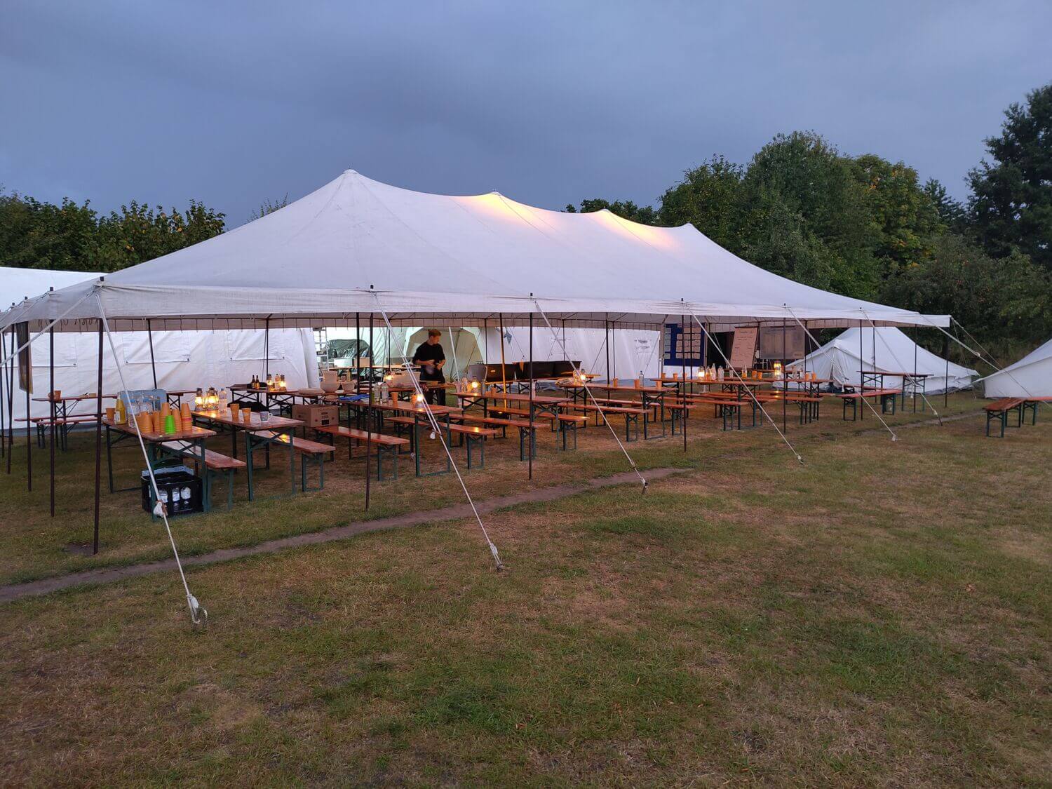 Das Wetter zeigt sich bislang größtenteils von seiner freundlichen Seite, und die Atmosphäre ist durchweg gut – sonnige Stunden stärken die Motivation und sorgen für eine positive Stimmung & Energie rund um’s Camp.