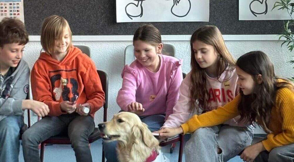 In der letzten Woche erlebte die Klasse 5e einen ganz besonderen Besuch: Ein Assistenzhund in Ausbildung, ein freundlicher Golden Retriever namens Jonee, kam in die Klasse.