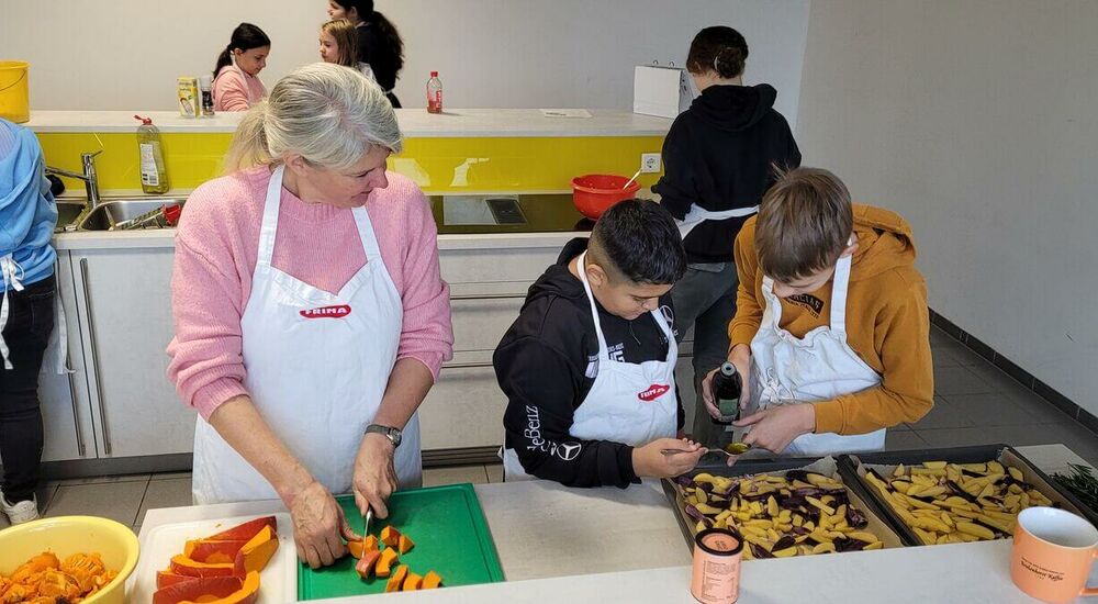 Zum diesjährigen „Erntesnack“, diesmal im kleinen Rahmen, trafen sich Mitglieder der Schulgarten AG zusammen mit Schüler/innen der Jahrgänge 5, 6, 8 und 9 mit ihren Ackerlehrern zu einem gemeinsamen Kochevent mit anschließendem gemütlichen Snacken.
