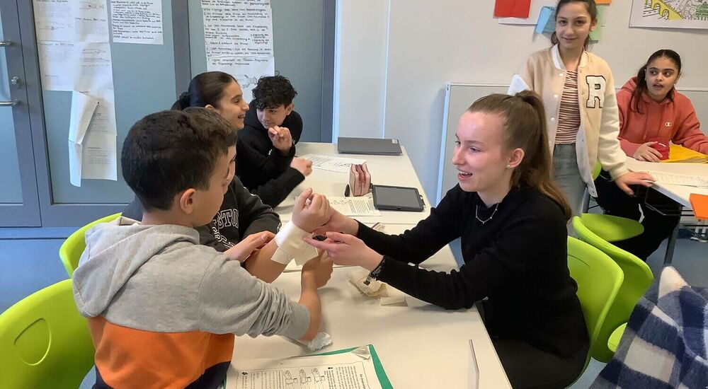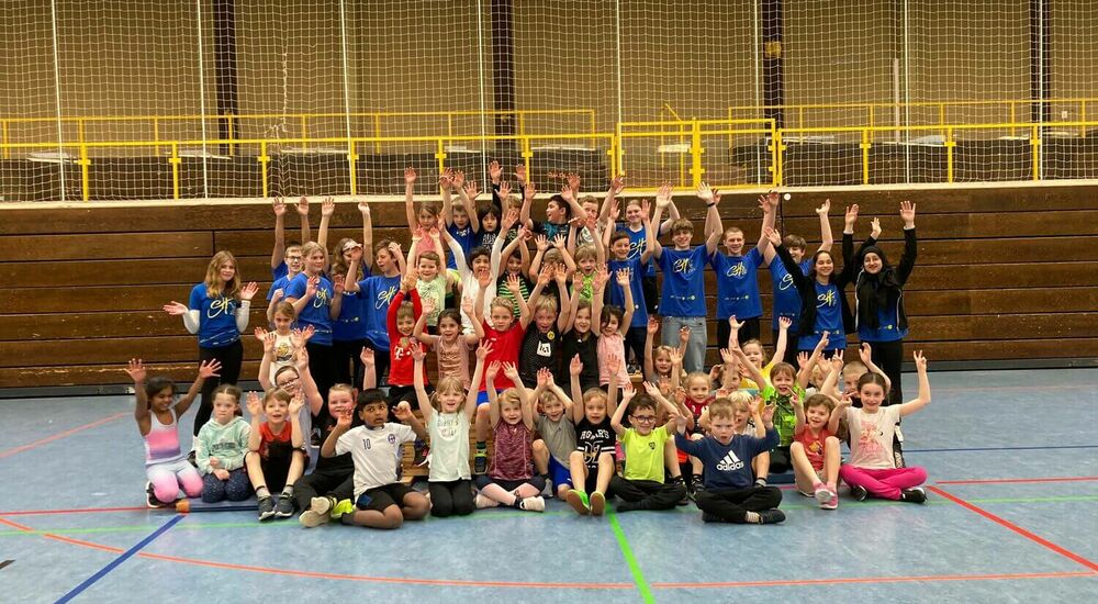 Das Sportfest des 1. Jahrgangs der Marien-Grundschule in der Rönnehalle war heute ein gelungenes Event! Wesentlich dazu beigetragen haben 12 Sporthelfer*innen des aktuellen 8. und 9. Jahrgangs, die beim Auf-und Abbau sowie bei der Betreuung der Stationen Lehrkräfte und Kinder unterstützten.