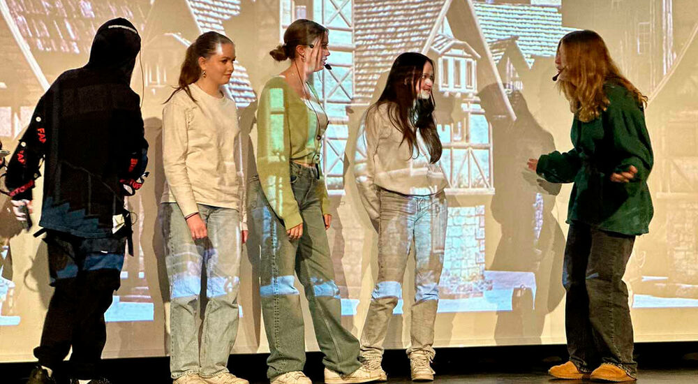 Seit einem halben Jahr haben sie im Unterricht daran gearbeitet: die Wahlpflichtkurse Darstellen und Gestalten des 7., 8., 9. Und 10. Jahrgangs mit ihren Kurslehrenden Ursula Lückge-Pott, Kerstin Hochhaus und Axel Kuhn präsentierten die abwechslungsreiche Revue "ZEITRAUM“ vor begeistertem Publikum auf der Bühne der Schulmensa der Nelson-Mandela-Gesamtschule.