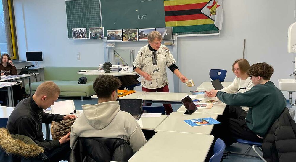 Die kulturellen, wirtschaftlichen, und politischen Beziehungen zwischen Deutschland und der Republik Simbabwe standen im Mittelpunkt eines Unterrichtsprojekts des Q1-Leistungskurses Erdkunde mit Dr. Reinhold Hemker (79), seit 1995 Präsident der Deutsch-Simbabwischen Gesellschaft (DSG) und Botschafter für Entwicklungszusammenarbeit.