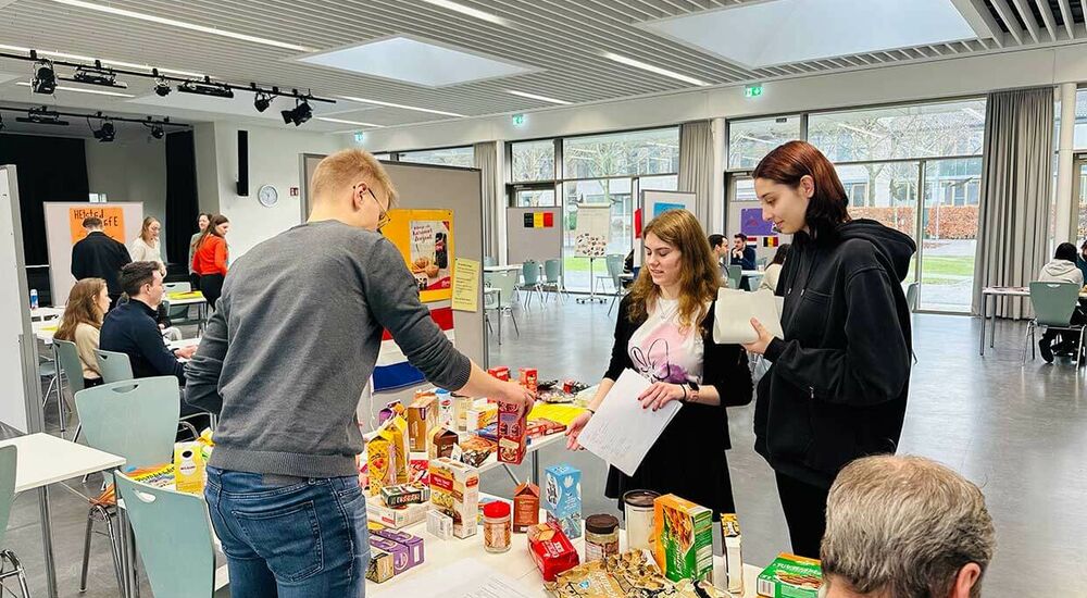 „Hoe kan ik u helpen?” wurden die Schülerinnen und Schüler der Klassen 8 des Wahlpflichtfach Niederländisch und der EF, die seit 5 Monaten mit Niederländisch in der Oberstufe angefangen haben, an diesem Vormittag etliche Male gefragt. Und zwar im „Taaldorp“, dem niederländischen „Sprachdorf“, das einmal im Jahr in der Nelson-Mandela-Gesamtschule seine rot-weiß-blauen Zelte aufschlägt.