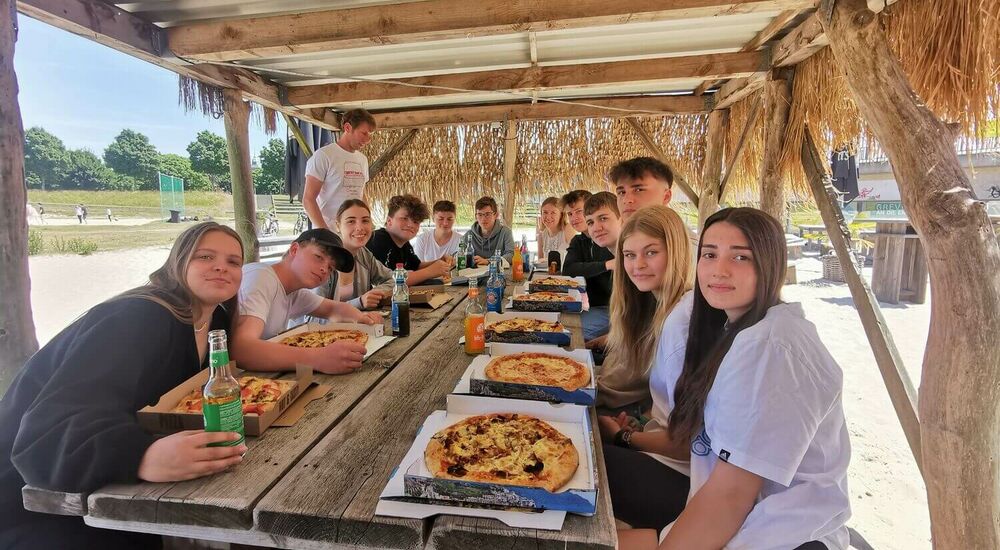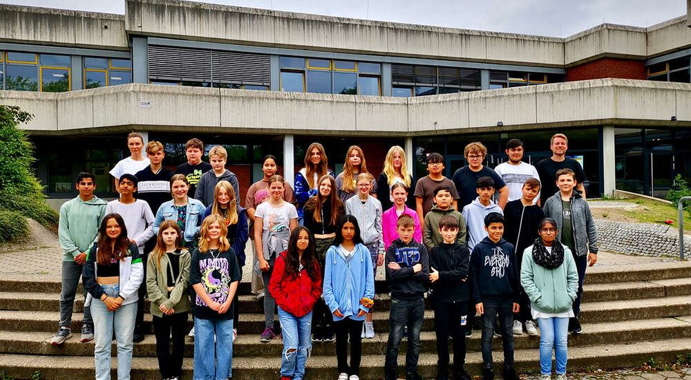 Nach langer Coronapause konnten die Blasorchester der Nelson-Mandela-Gesamtschule endlich wieder ein Konzert geben. Zum Schuljahresabschluss präsentierten die Bläserklasse 6b unter der Leitung von Linda Krusekamp und die Blasorchester-AG unter der Leitung von Ulrich Falk gemeinsam das Ergebnis der diesjährigen Probenarbeit. Geboten wurde ein buntes Programm - von Klassik über Popmusik bis Filmmusik. Parallel zur Orchesterarbeit im AG-Unterricht wurde im Instrumentalunterricht der Musikschule Greven geprobt, die im Profil "Bläserklasse" seit Jahren mit der NMG zusammenarbeitet. Zum Abschluss des Konzertes setzte die Gruppe mit dem Song "Komm, wir ziehen in den Frieden" ein Zeichen, in dem Solist Jonas ??? auch sein gesangliches Talent zeigte. Obwohl die Probenarbeit in den vergangenen zwei Jahren unter Coronabedingungen sehr schwierig und für die jungen Musiker*innen manchmal auch frustrierend war, überzeugte das Ensemble, das seine Stücke mit großer Spielfreude darbot und dafür vom Publikum viel Applaus erntete. "Dass die Kinder unter diesen Bedingungen drangeblieben sind und letztlich ein so tolles Konzert auf die Beine gestellt haben, macht uns sehr stolz", resümierte Krusekamp anschließend.