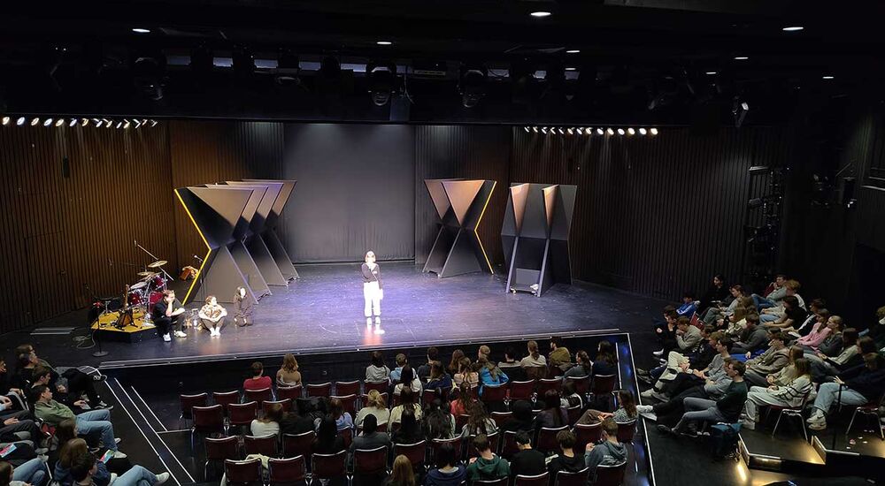 Im Anschluss an den Kulturtag unserer Schule besuchten am Dienstag 30 Schülerinnen und Schüler des Jahrgangs 9 der Nelson-Mandela-Gesamtschule gemeinsam mit Hrn. Brinkmann und Hrn. Dawin eine Vormittagsaufführung des Theaterstücks „Ein Deutsches Mädchen“ im Theater Münster.