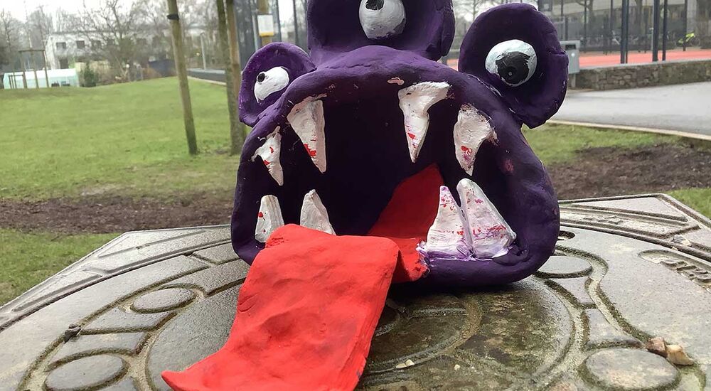 In mehreren Kunststunden lernten die Kinder der Klasse 6c die Grundlagen im Umgang mit Ton. Anschließend durften sie den Tonofen im Keller der Schule einlegen und nach einem Schrühbrand ihre noch warmen Monster anmalen.